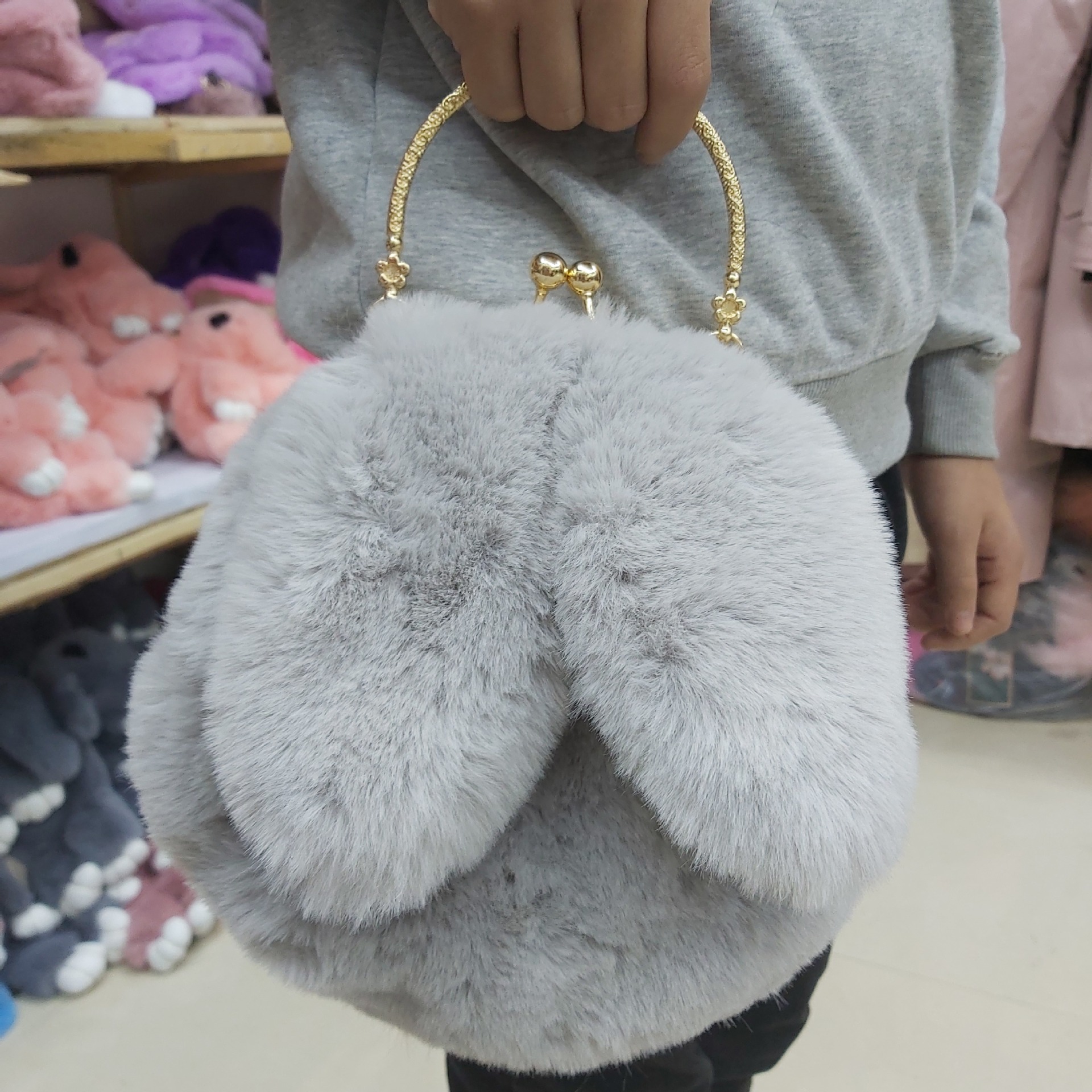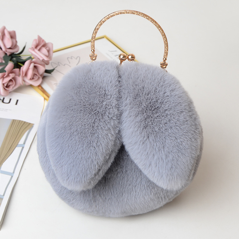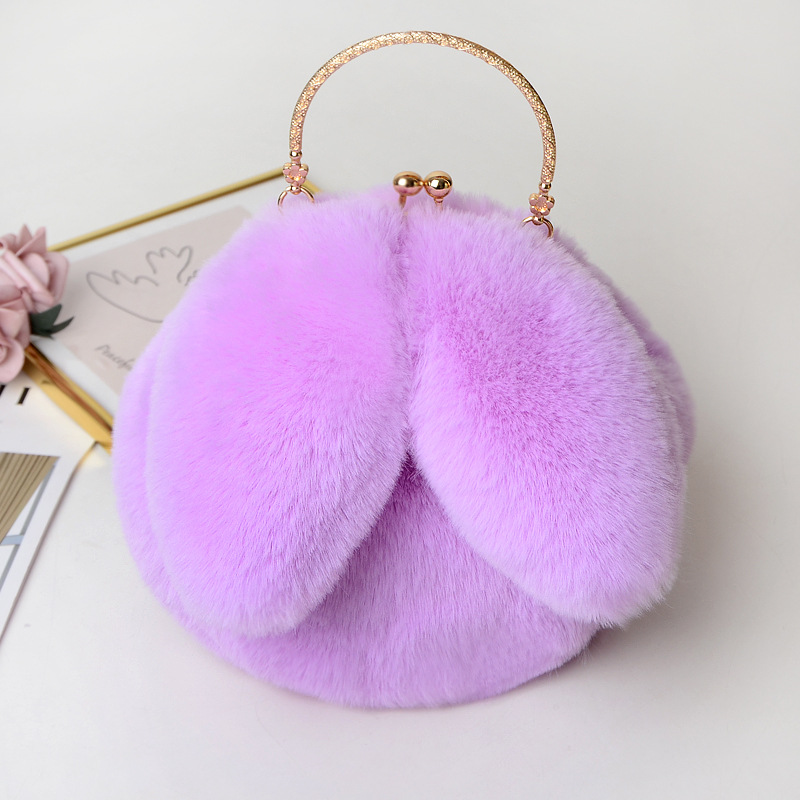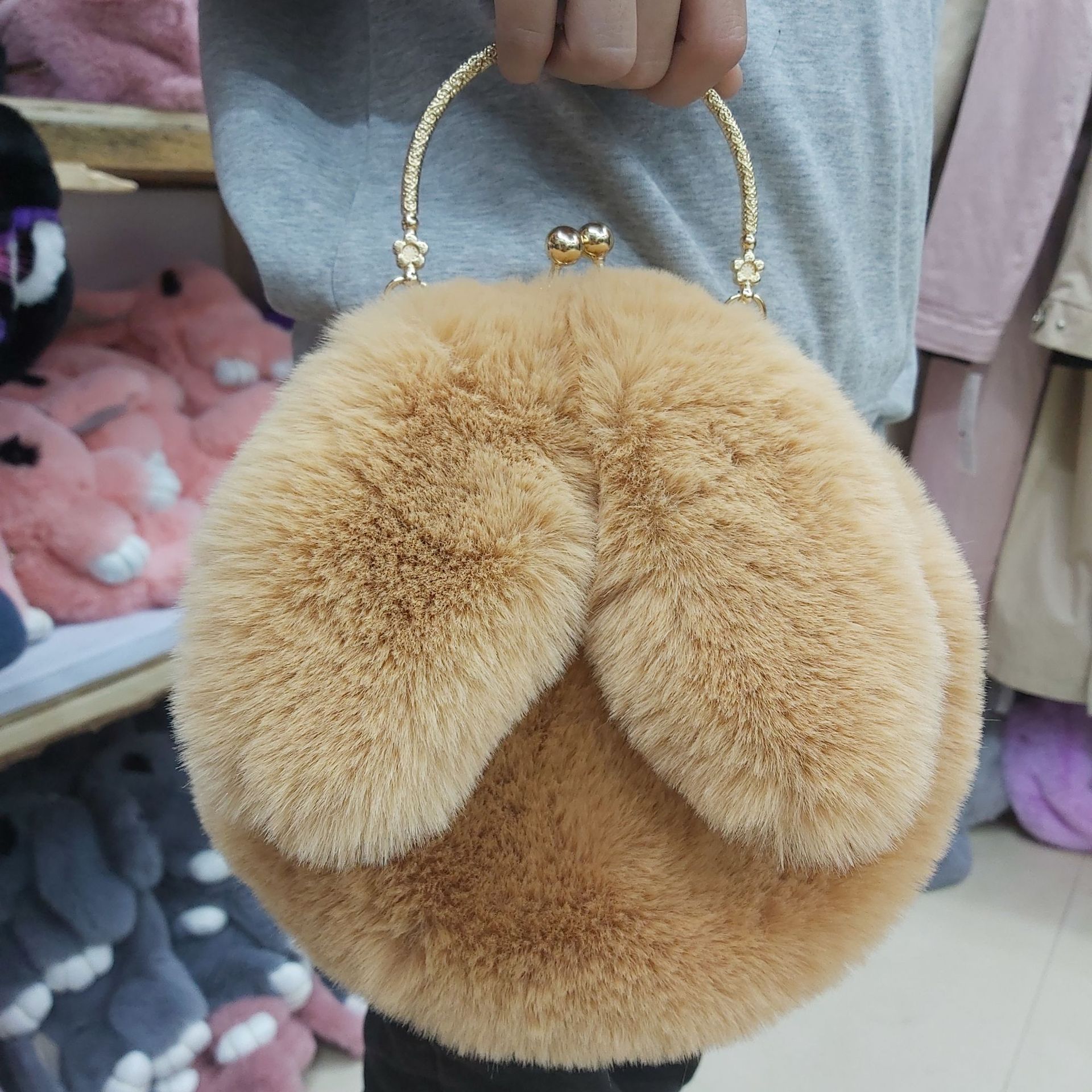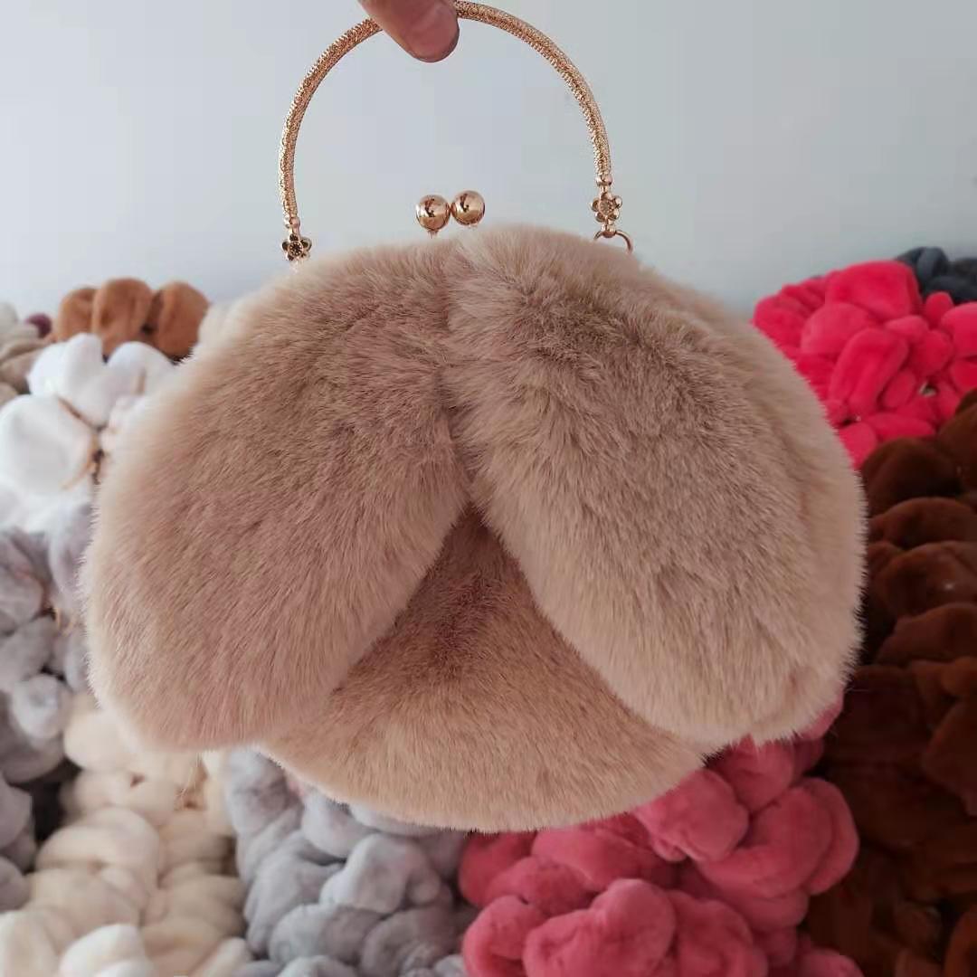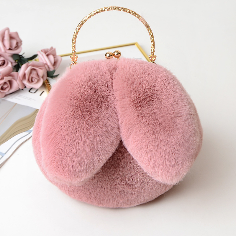 新款时尚毛绒兔耳朵链条包百搭可爱软萌兔子单肩斜挎手提小圆包包