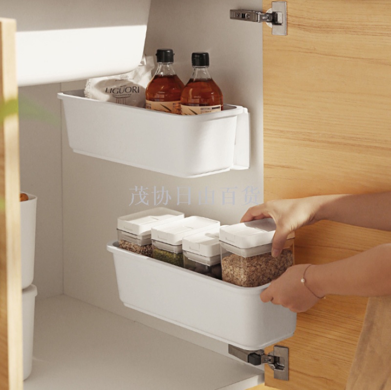 厨房收纳盒壁挂式免打孔收纳刀架用具夹缝抽屉式下水槽收纳盒推拉