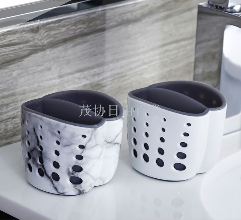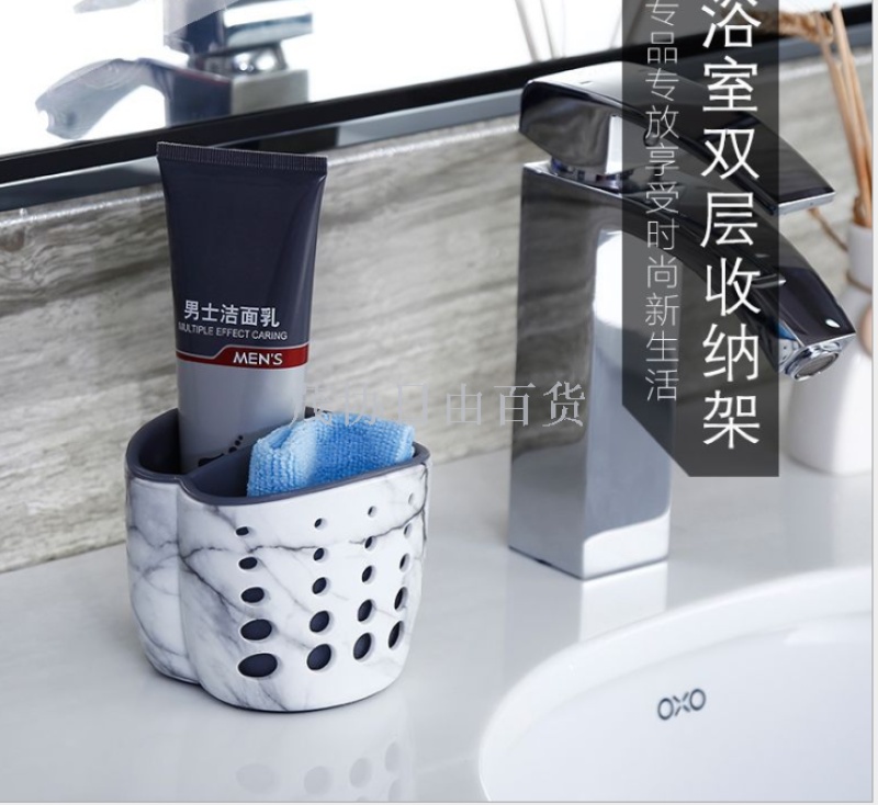 北欧风浴室用品 塑料浴室收纳 分层浴室置物架大理石纹吸盘收纳