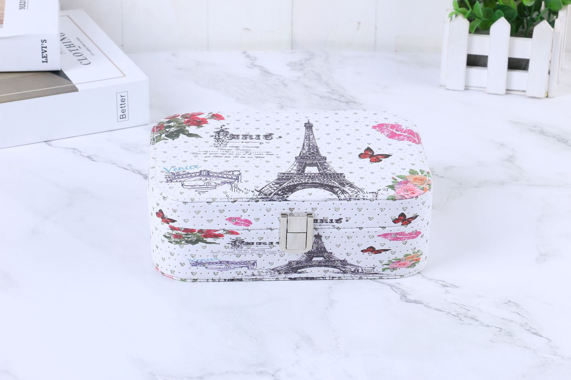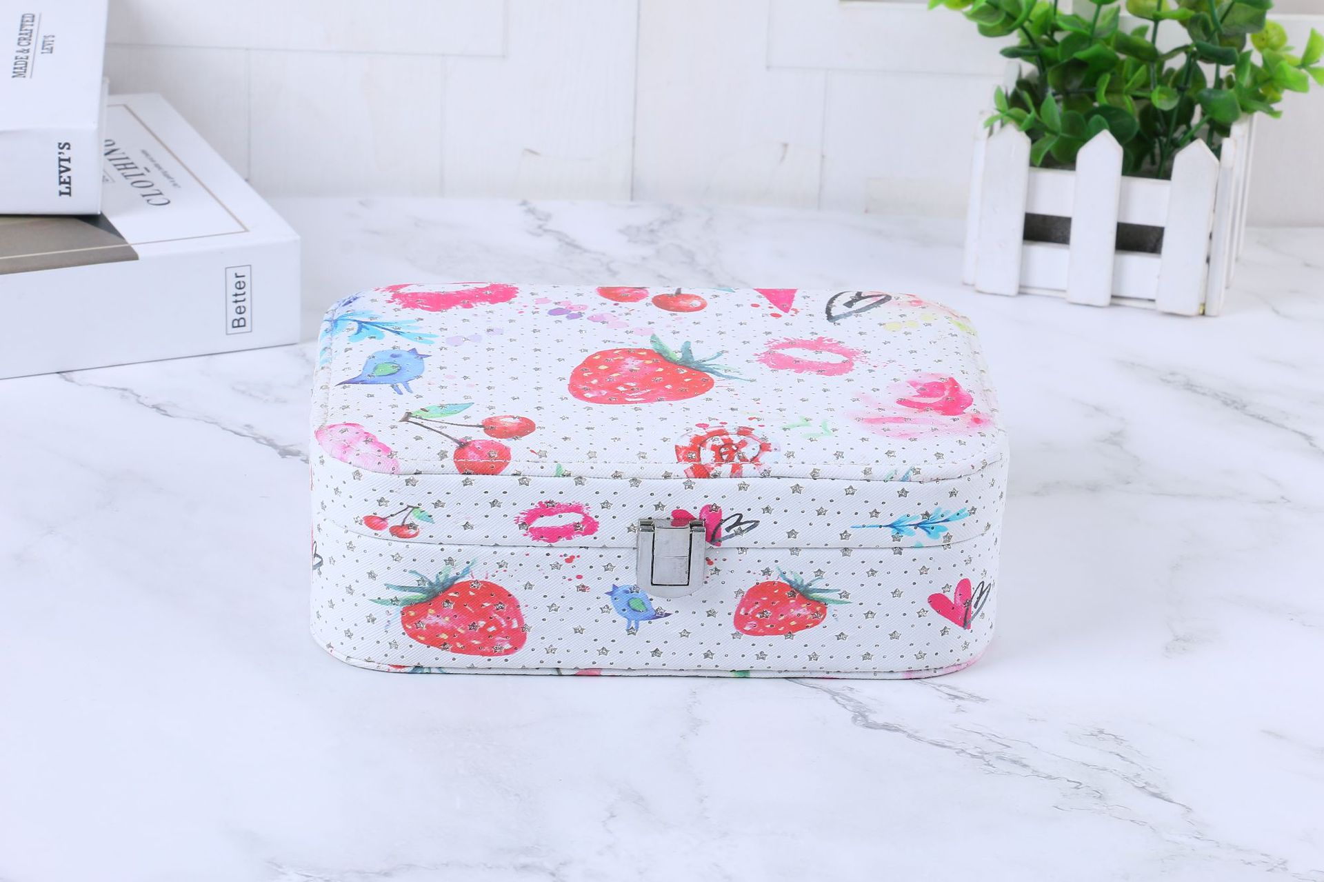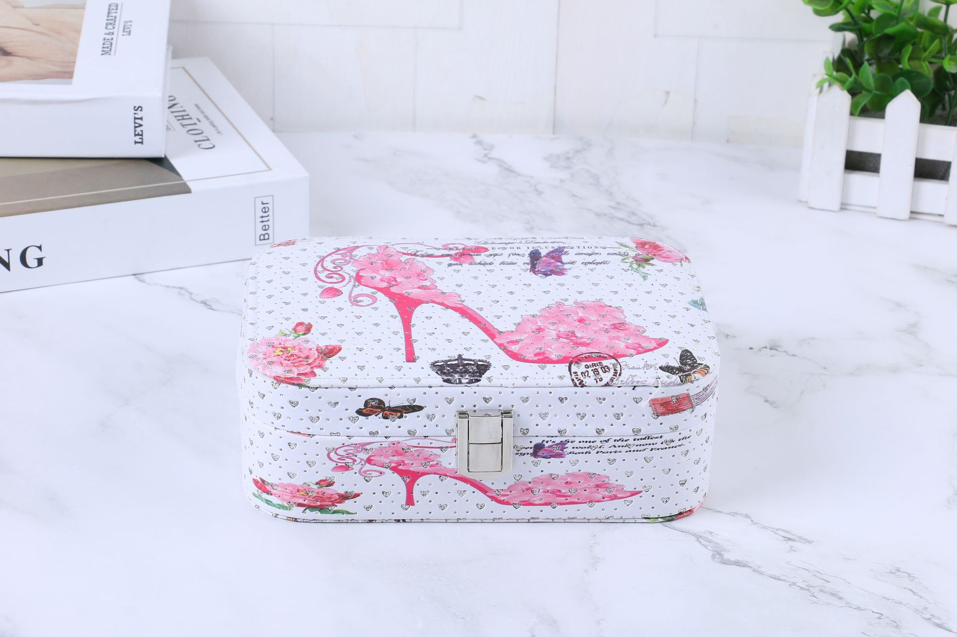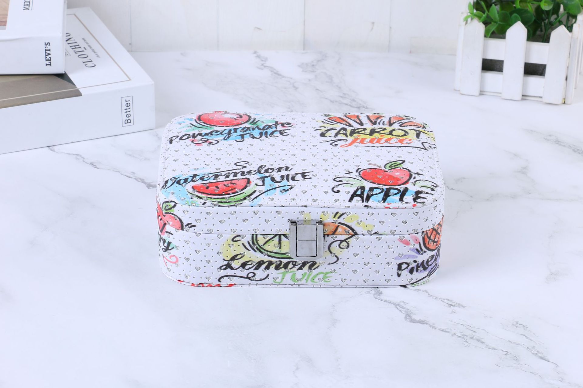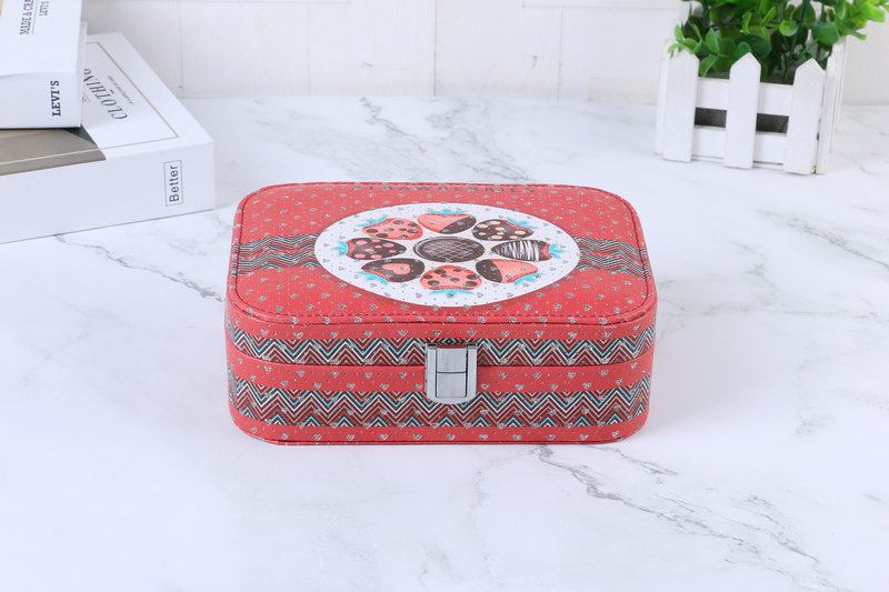 简约便携式带锁首饰盒创意大容量首饰收纳盒彩色印花首饰盒