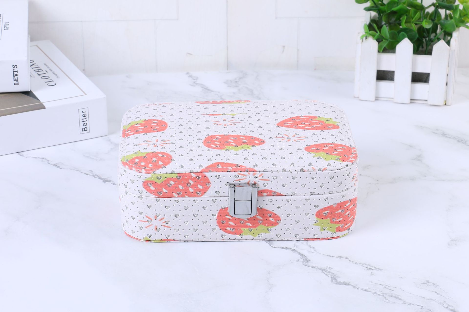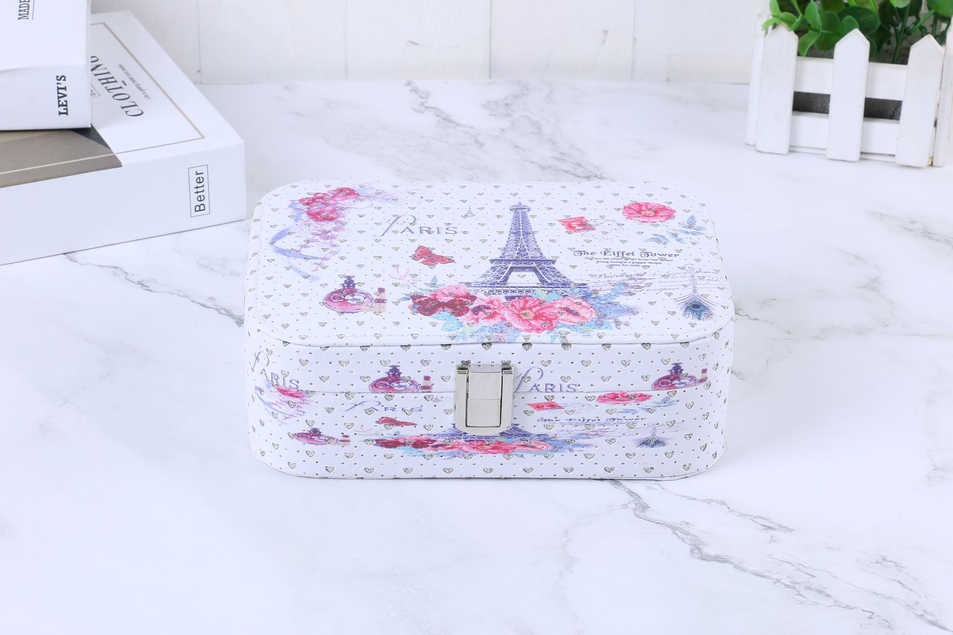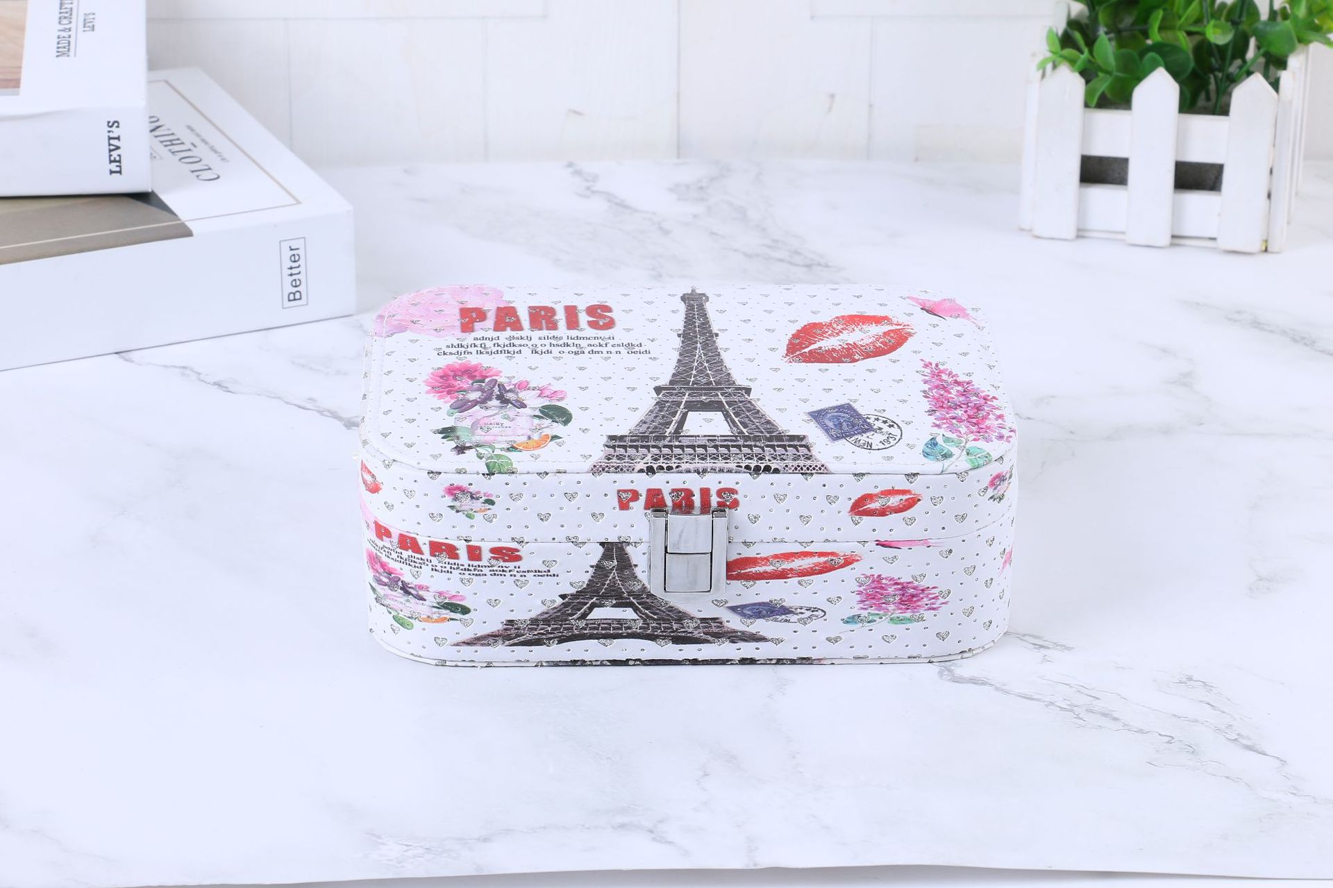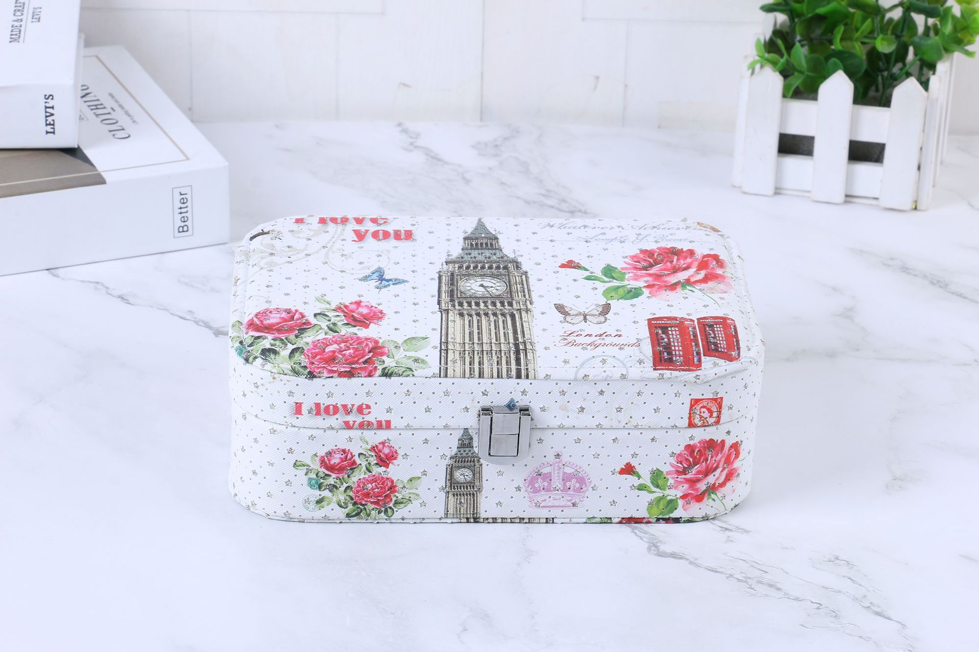 简约便携式带锁首饰盒创意大容量首饰收纳盒彩色印花首饰盒