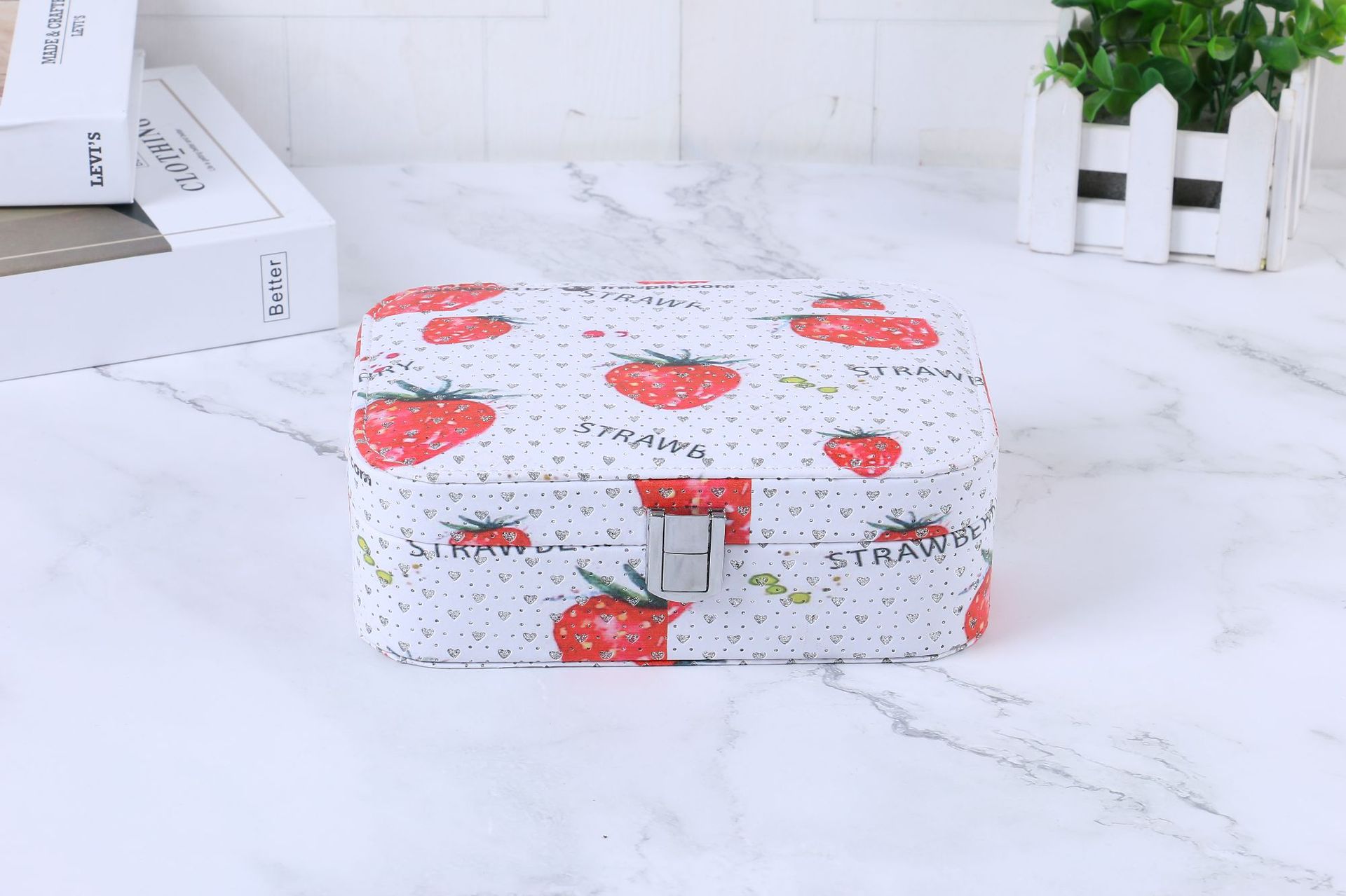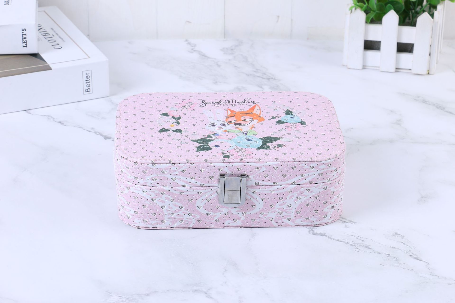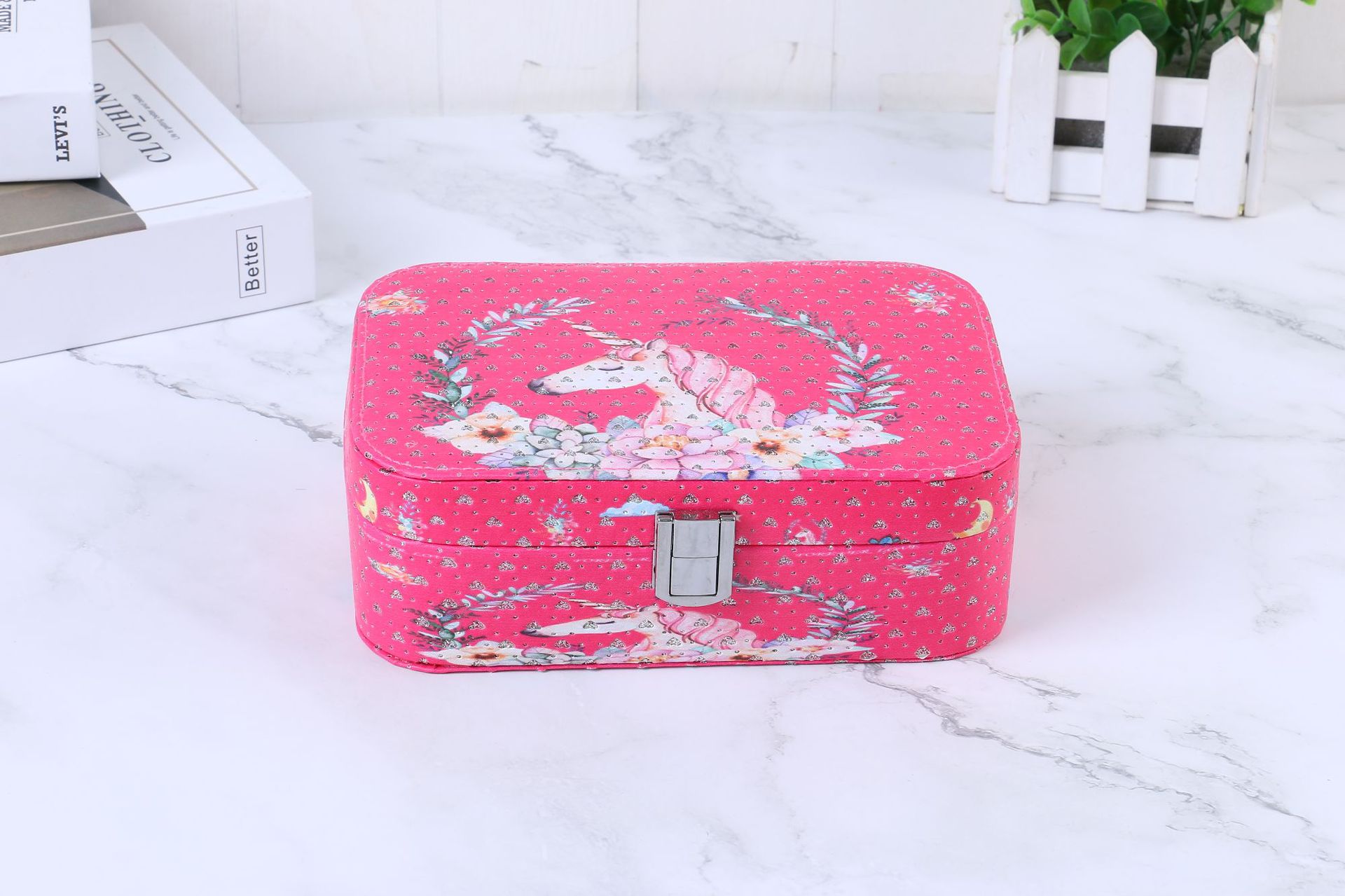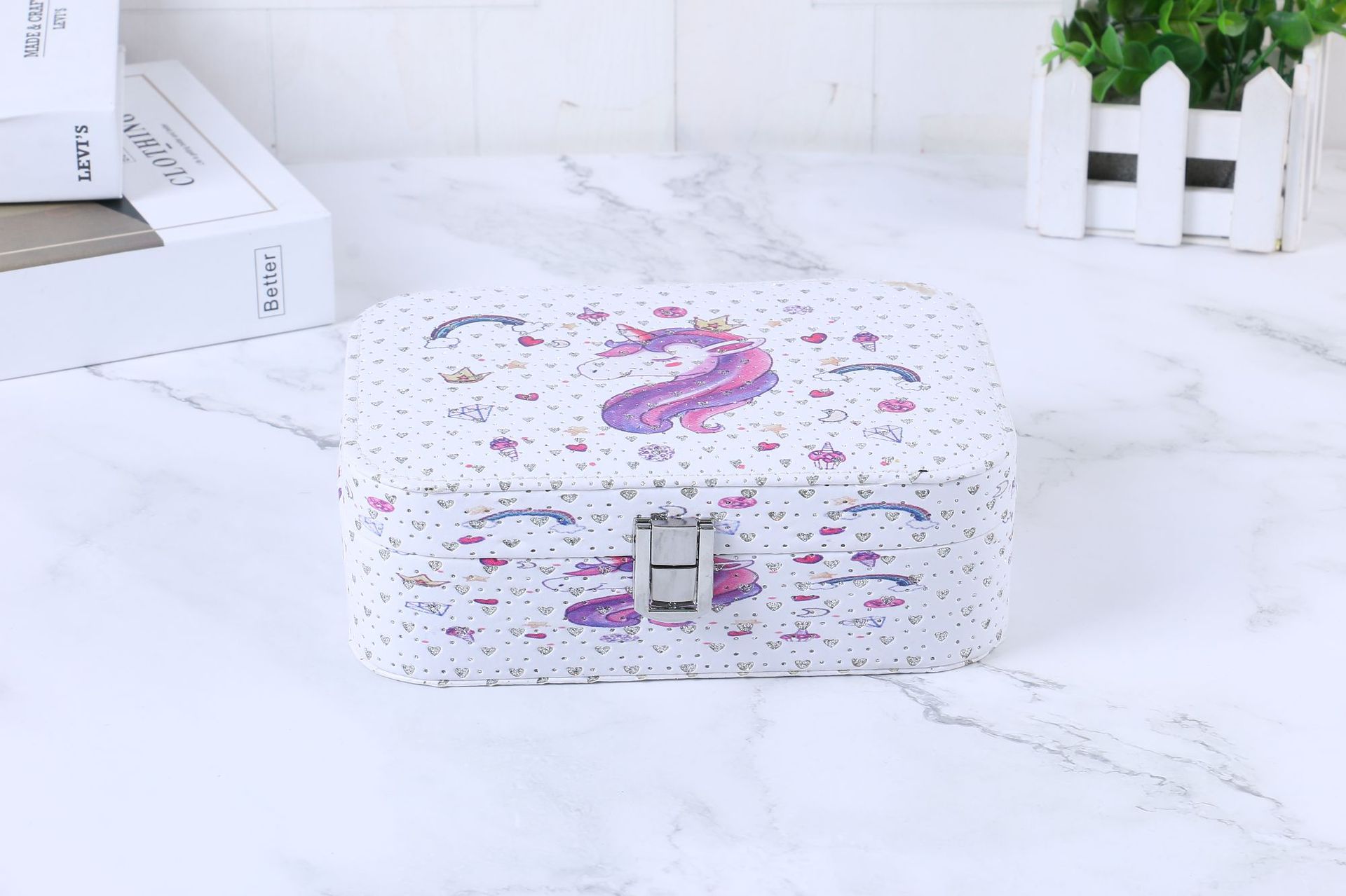 简约便携式带锁首饰盒创意大容量首饰收纳盒彩色印花首饰盒