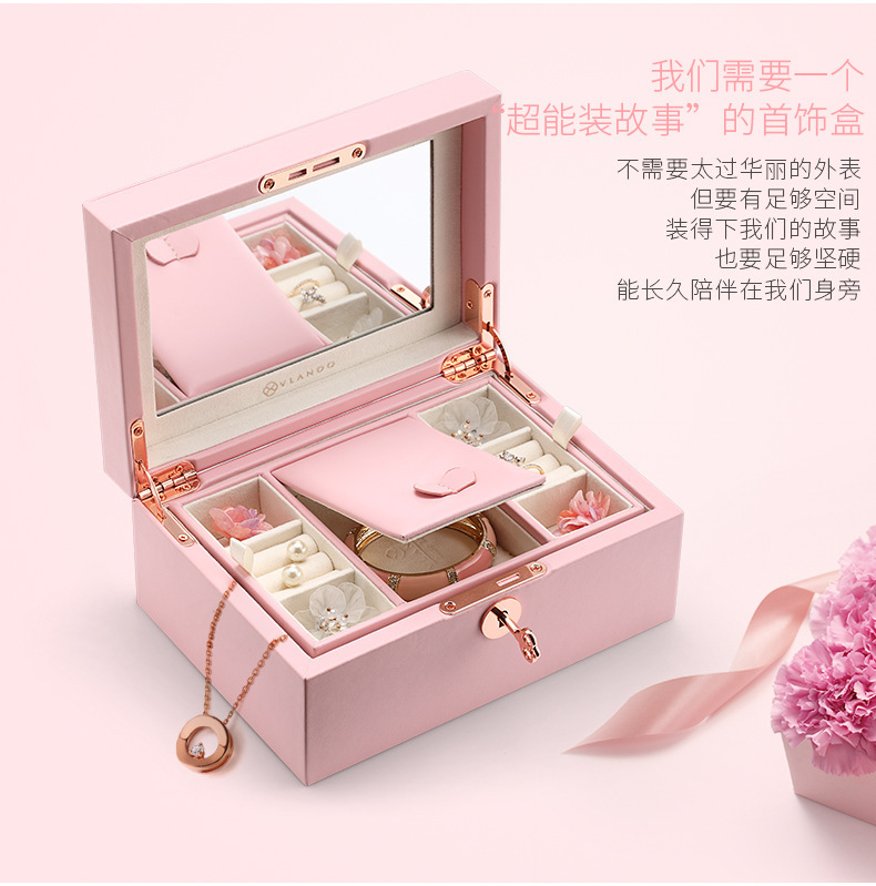 首饰盒饰品收纳 大容量高颜值ins风防尘皮质少女心厂家直销珠宝盒