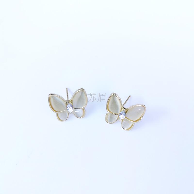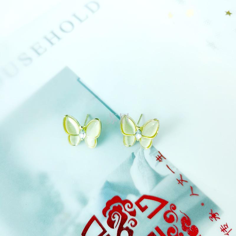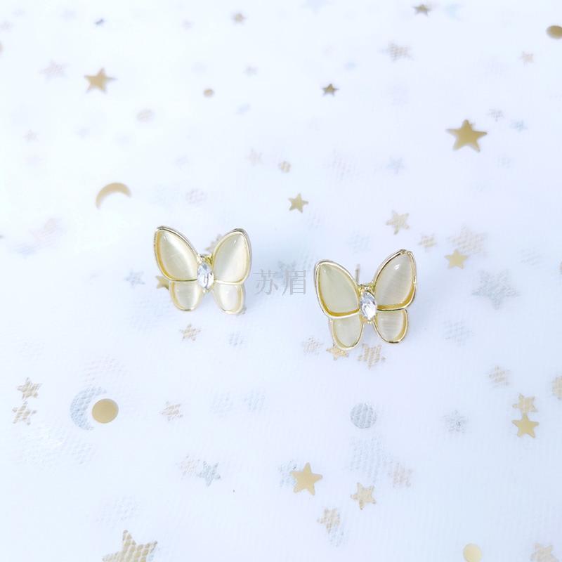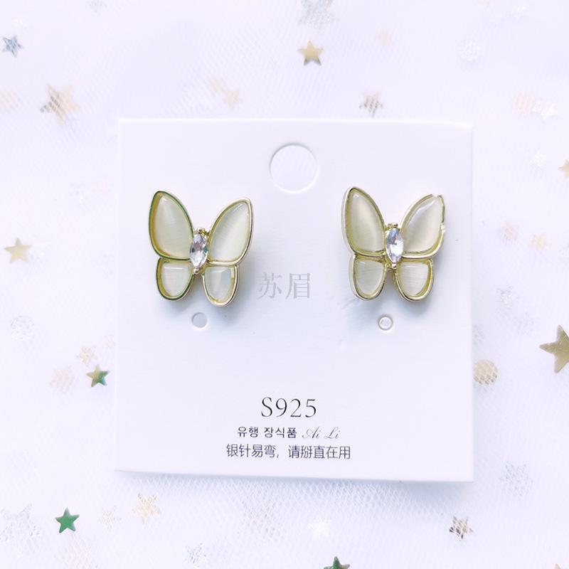S925银针贝母气质蝴蝶耳钉女温柔超仙高级感耳环法式简约网红女