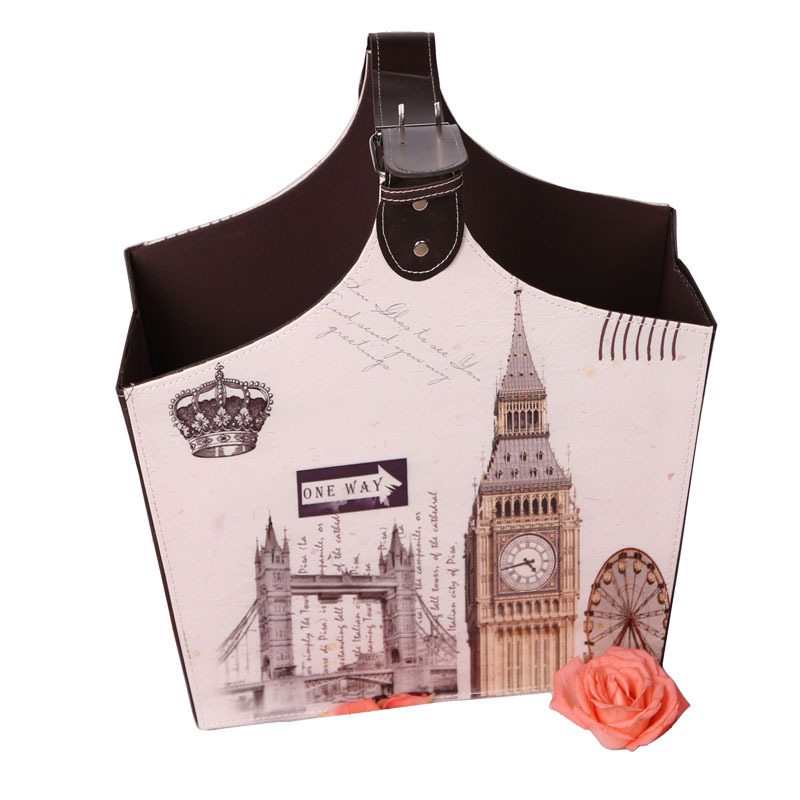 欧式收纳篮 礼品包装篮PU 杂志报刊书报篮 厂家批发 支持定制