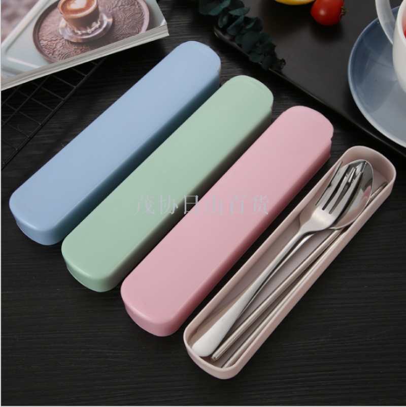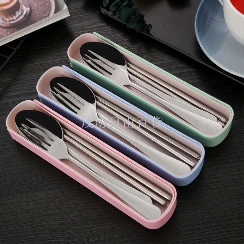 旅行便携式不锈钢餐具套装 学生三件套筷子叉勺子筷子盒装礼品