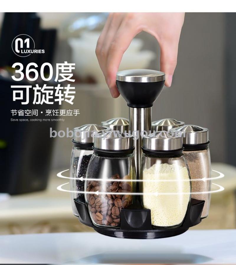 玻璃调味瓶厨房调味品收纳盐罐家用佐料盒旋转调料罐组合套装