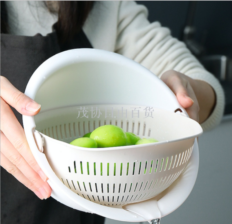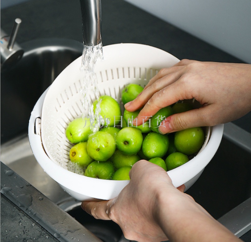 家居用品双层旋转沥水篮厨房储物水果清洗篮洗菜淘米塑料篮