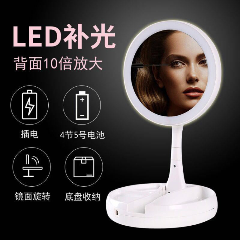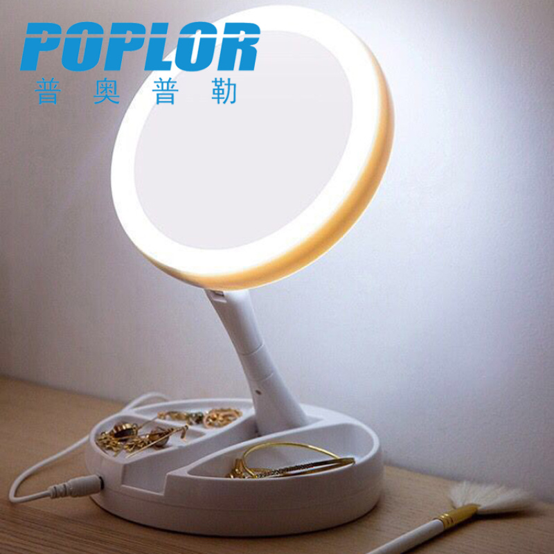 LED折叠款化妆镜台灯 5W女士台灯定制礼品 USB供电带镜子台灯