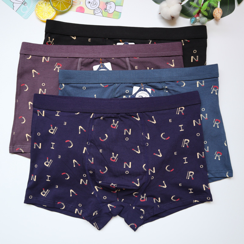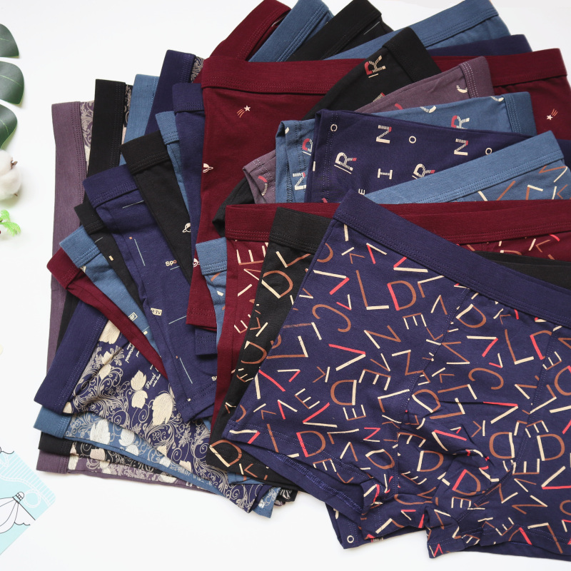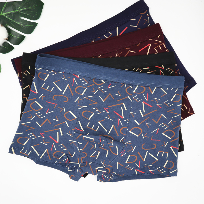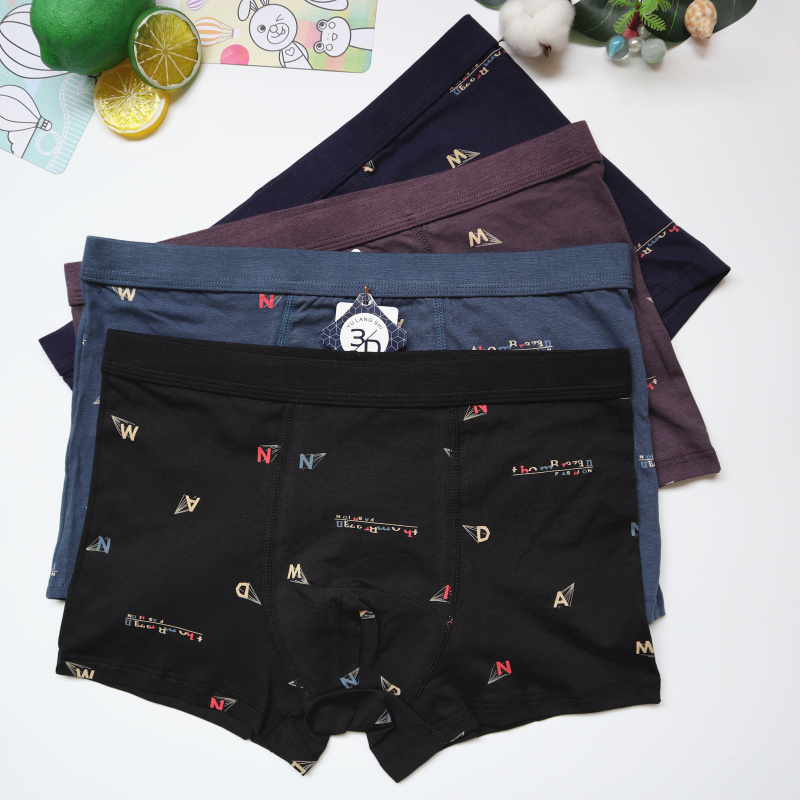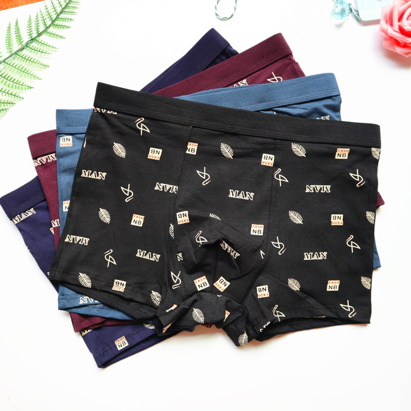 热销男士内裤天然纯棉亲肤印花平角裤透气舒适U凸全棉四角裤批发