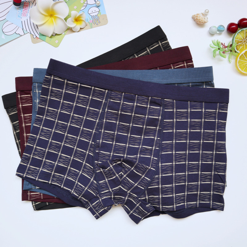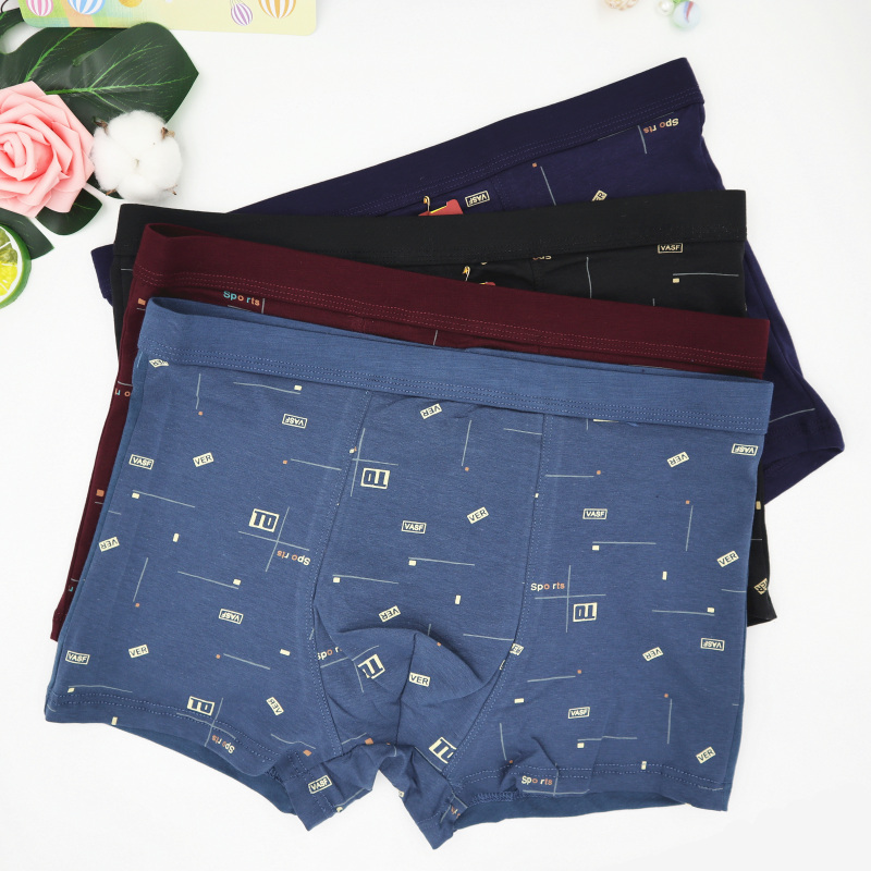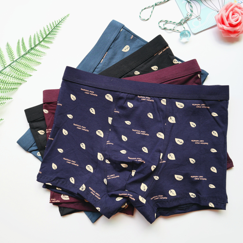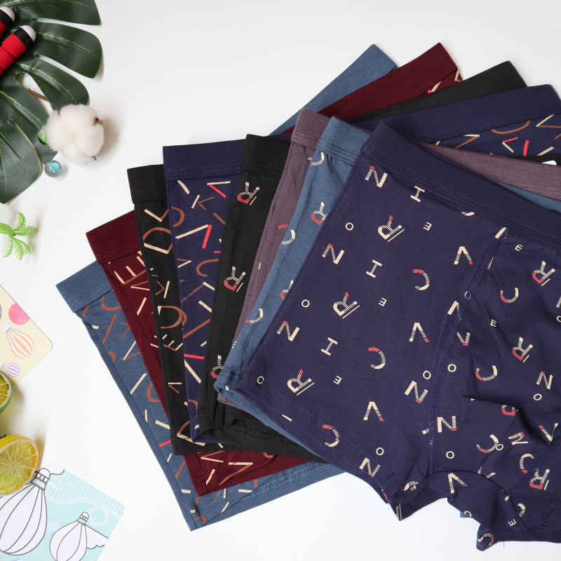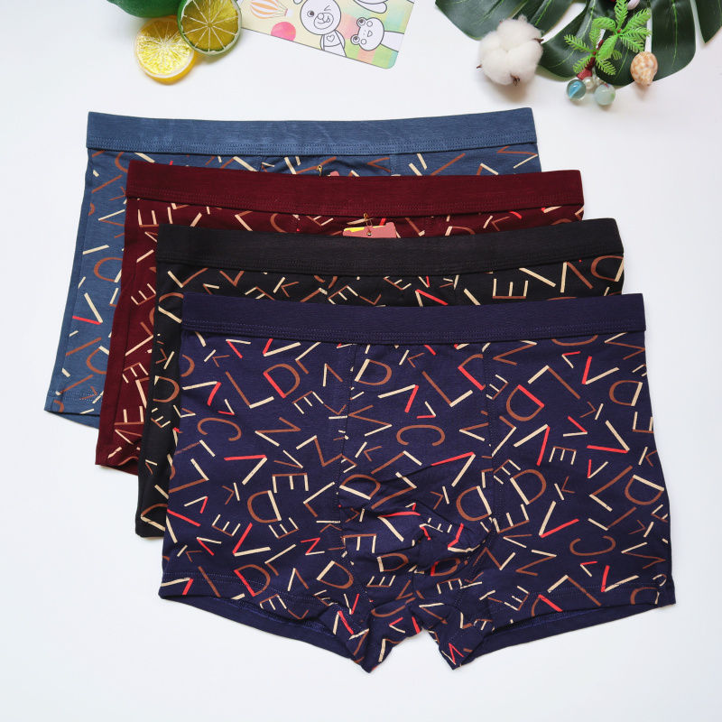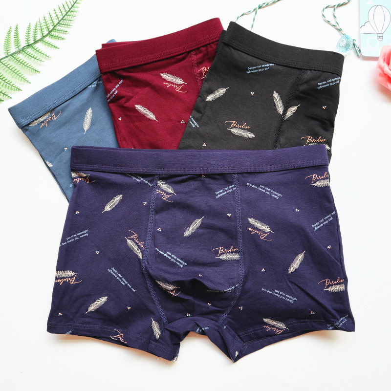热销男士内裤天然纯棉亲肤印花平角裤透气舒适U凸全棉四角裤批发