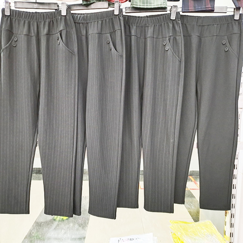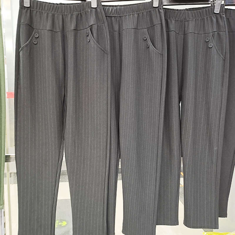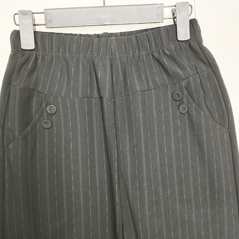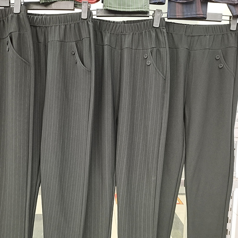 春秋新款麻料裤妈妈九分裤松紧高腰裤休闲宽松百搭中老年人直筒裤