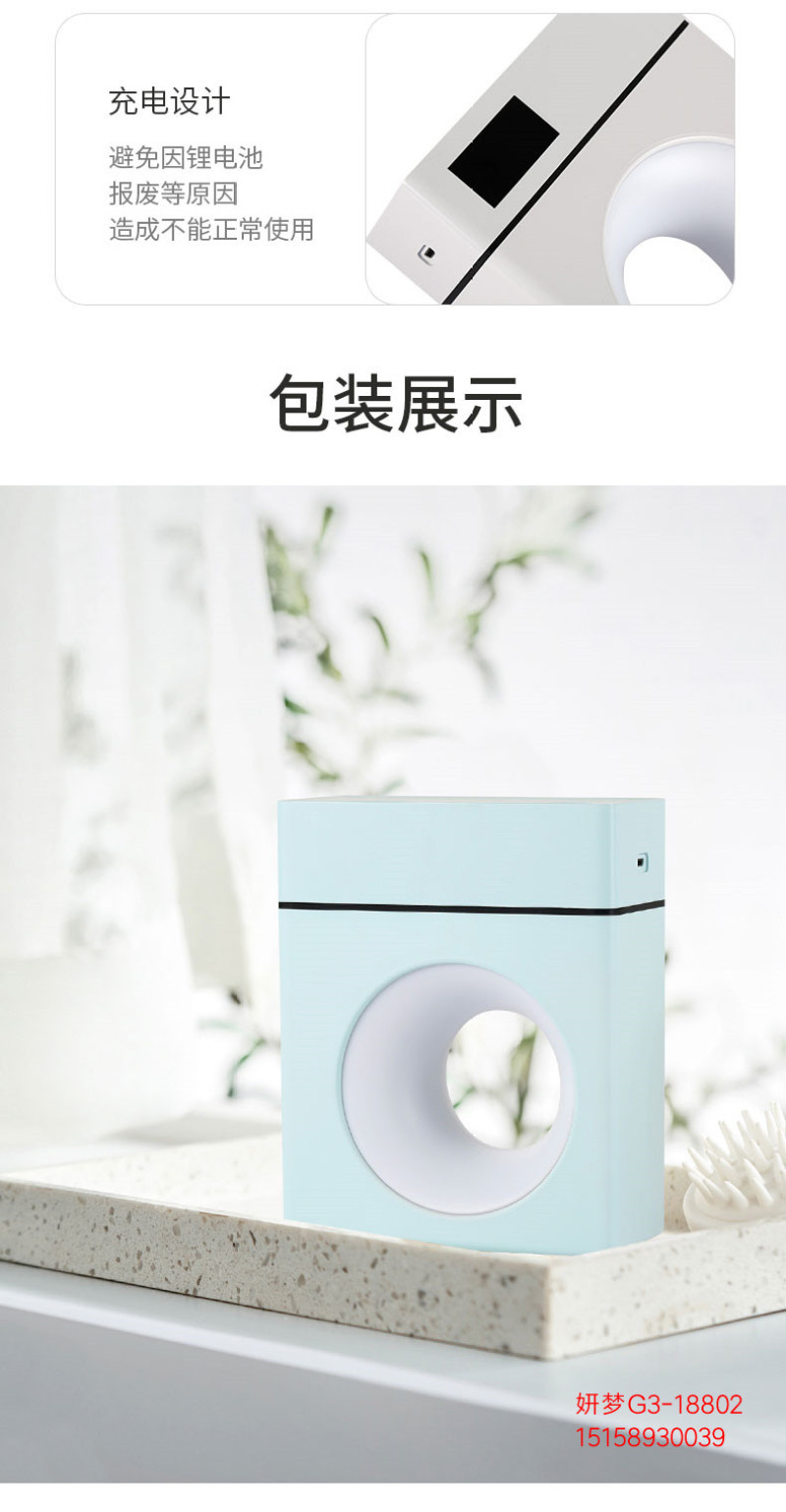 包装清单:加湿器*1、袋子*1、充电线*1、棉棒*1、中英文说明书*1、中英文包装彩盒*1
