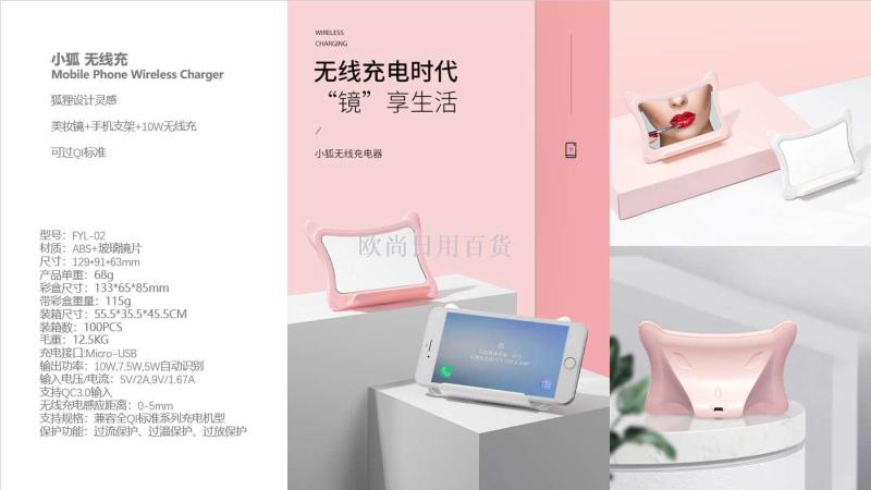 10W创意新款无线快充电器化妆镜 桌面手机架懒人随身镜亚马逊爆款