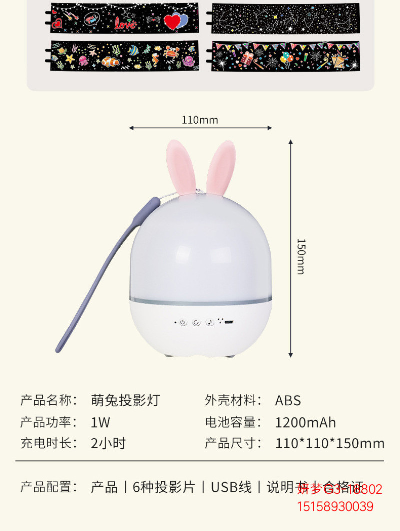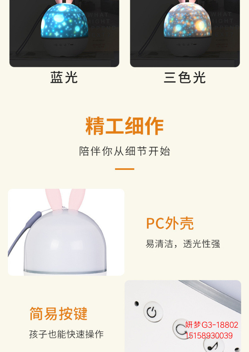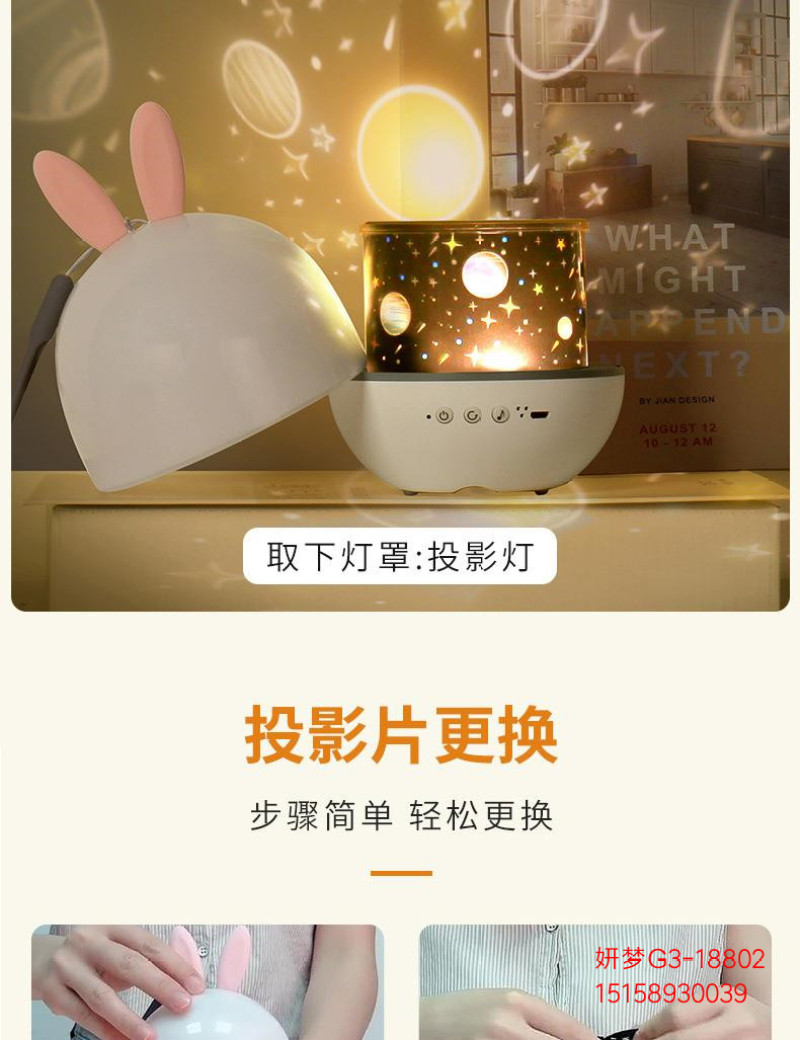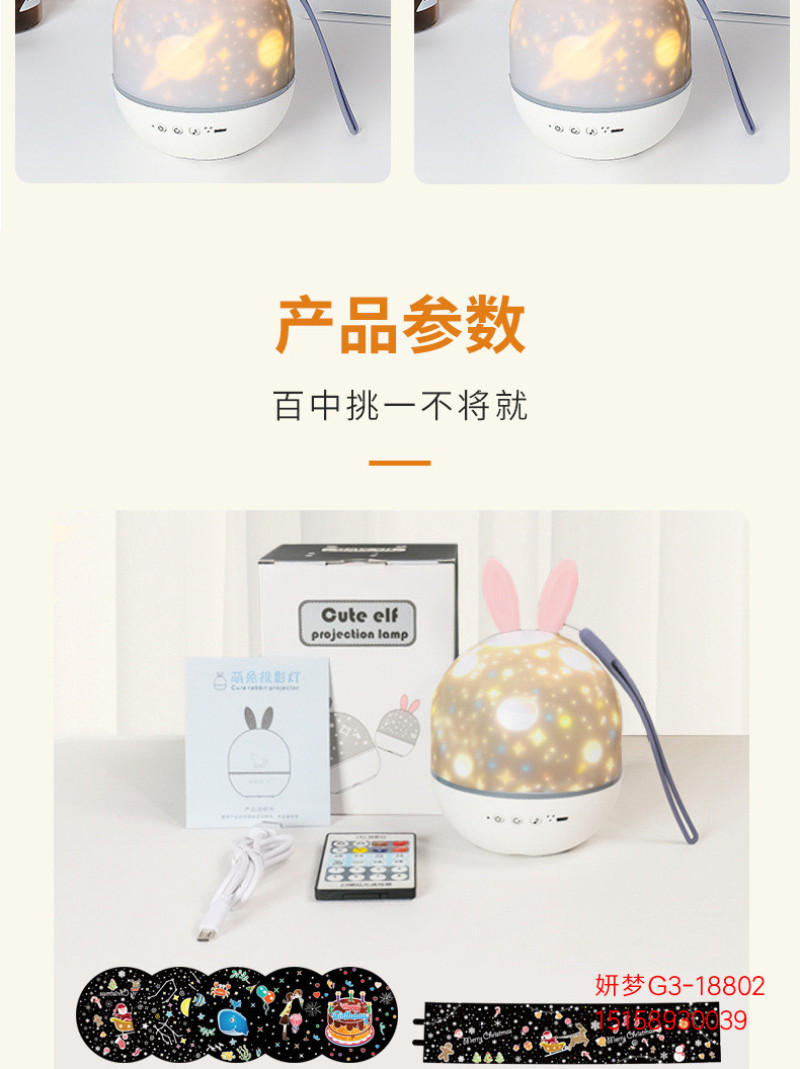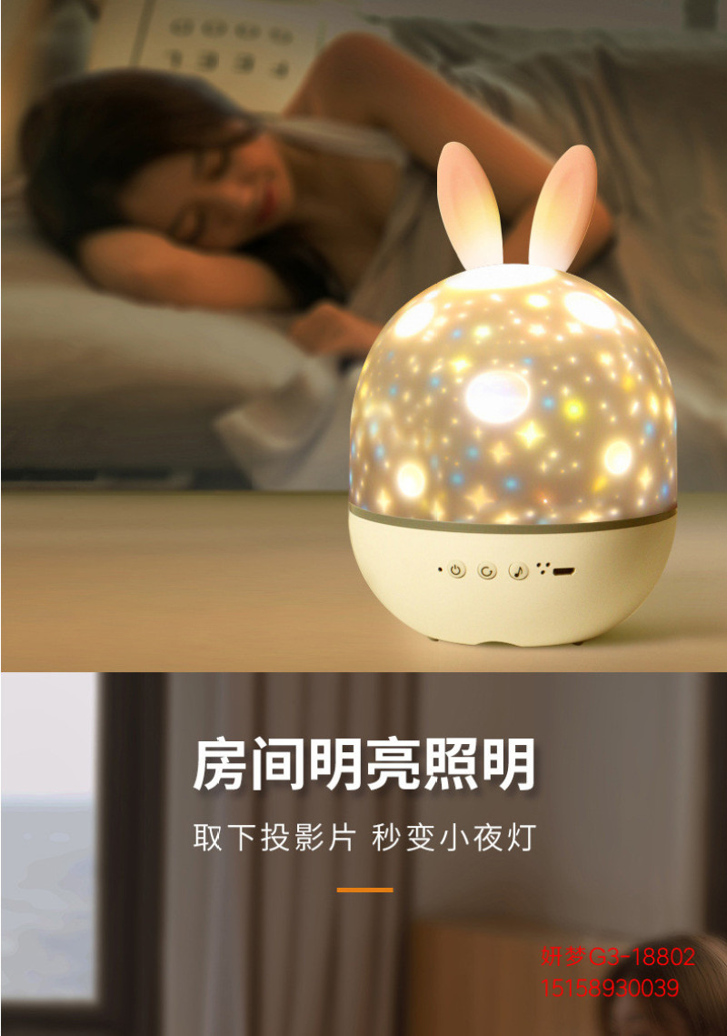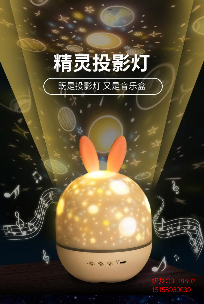 精灵萌兔星空投影灯星月led充电旋转氛围小夜灯台灯创意礼物