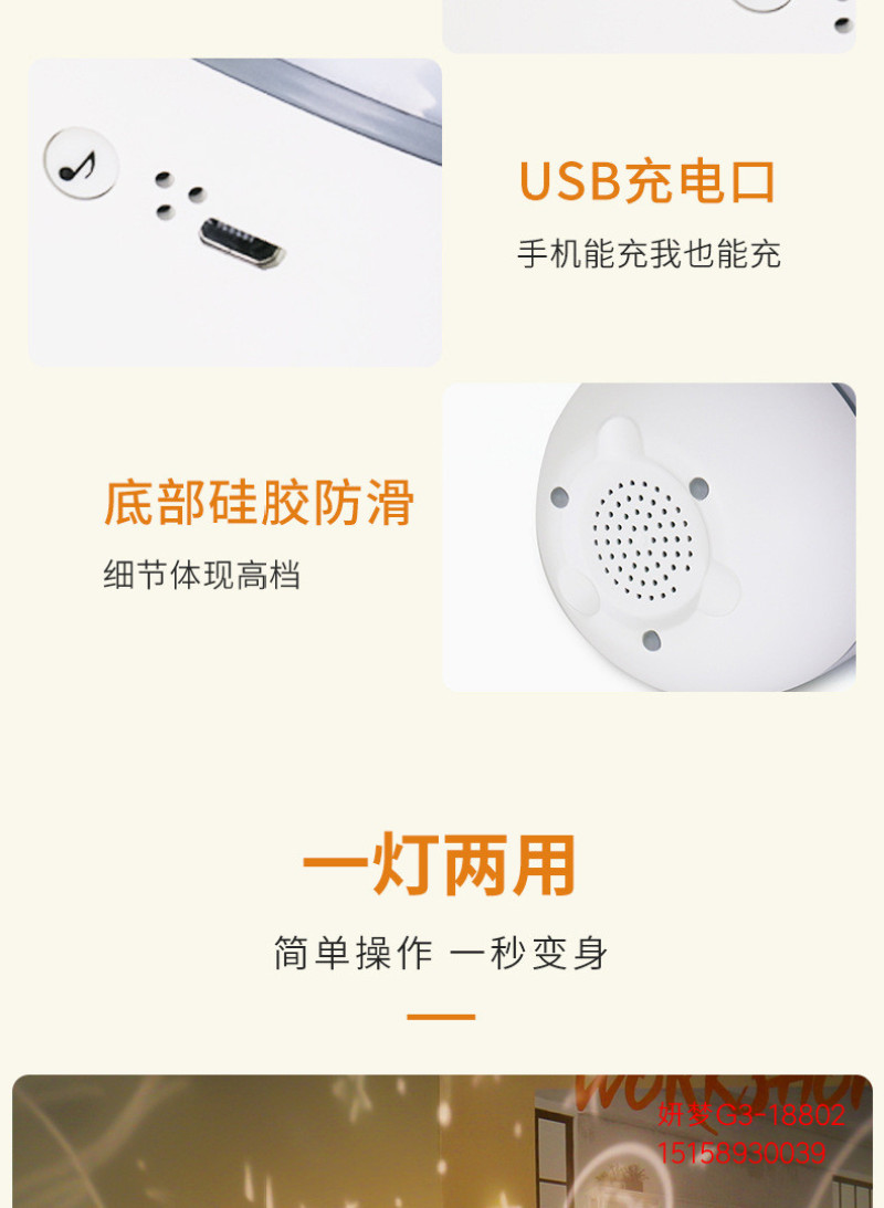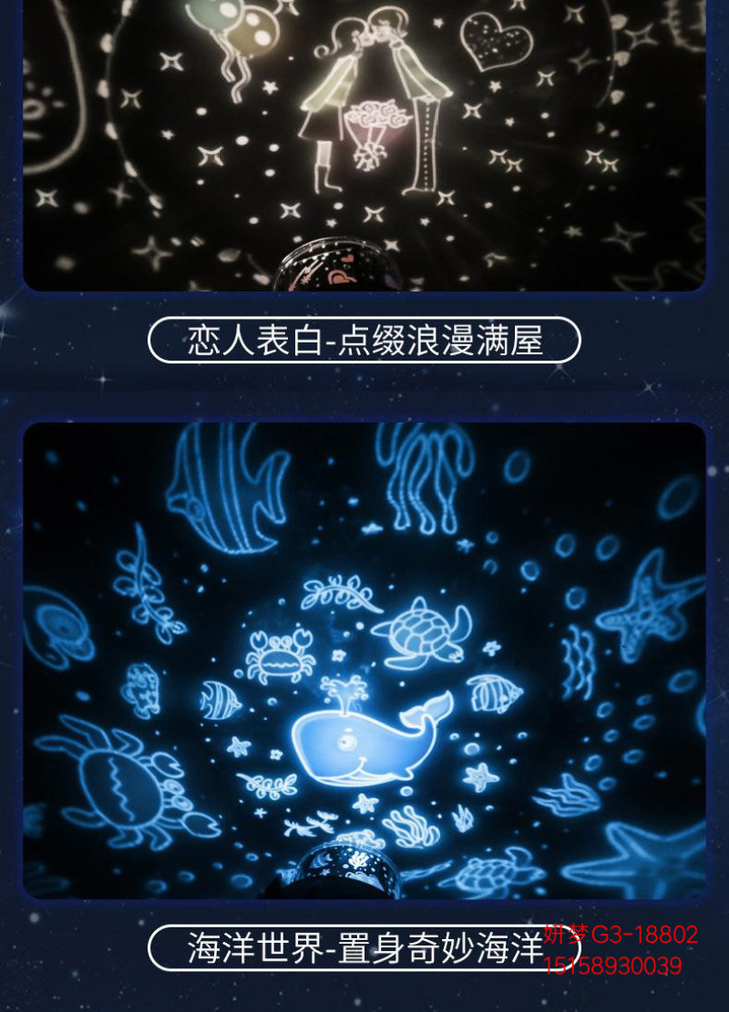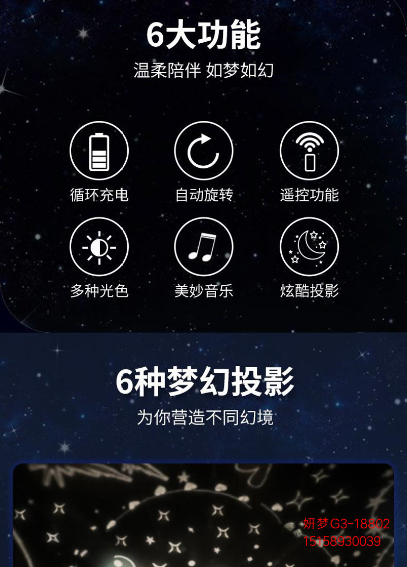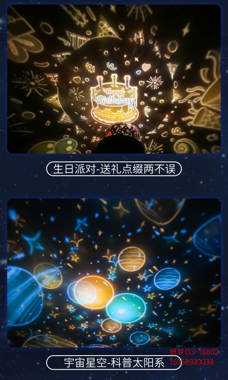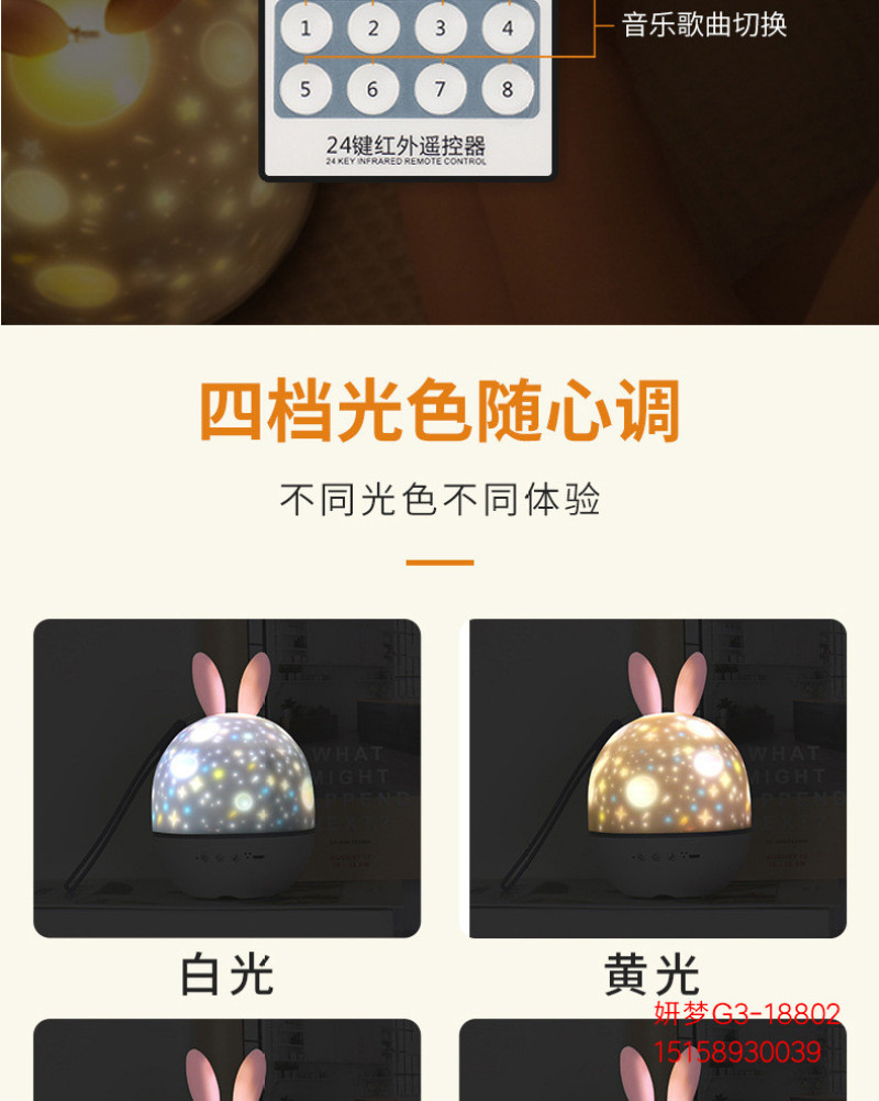精灵萌兔星空投影灯星月led充电旋转氛围小夜灯台灯创意礼物