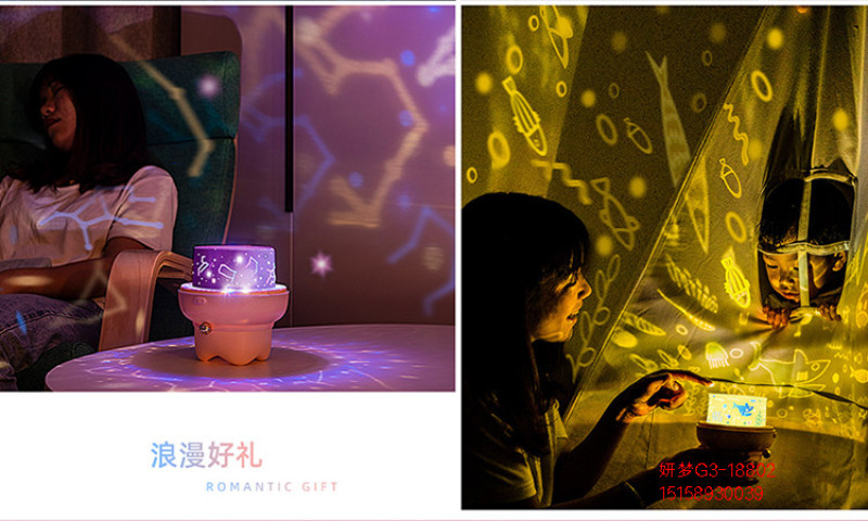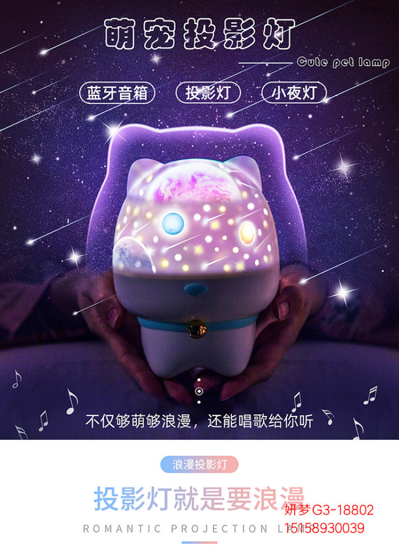 萌宠投影灯星空满天星星月亮生日浪漫旋转小夜灯卧室蓝牙音箱灯