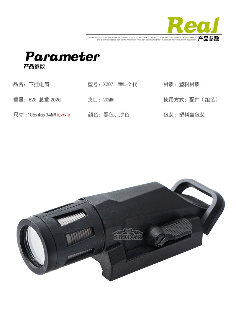 WML二代带侧拨开关瞄准镜下挂LED强光战术手电筒