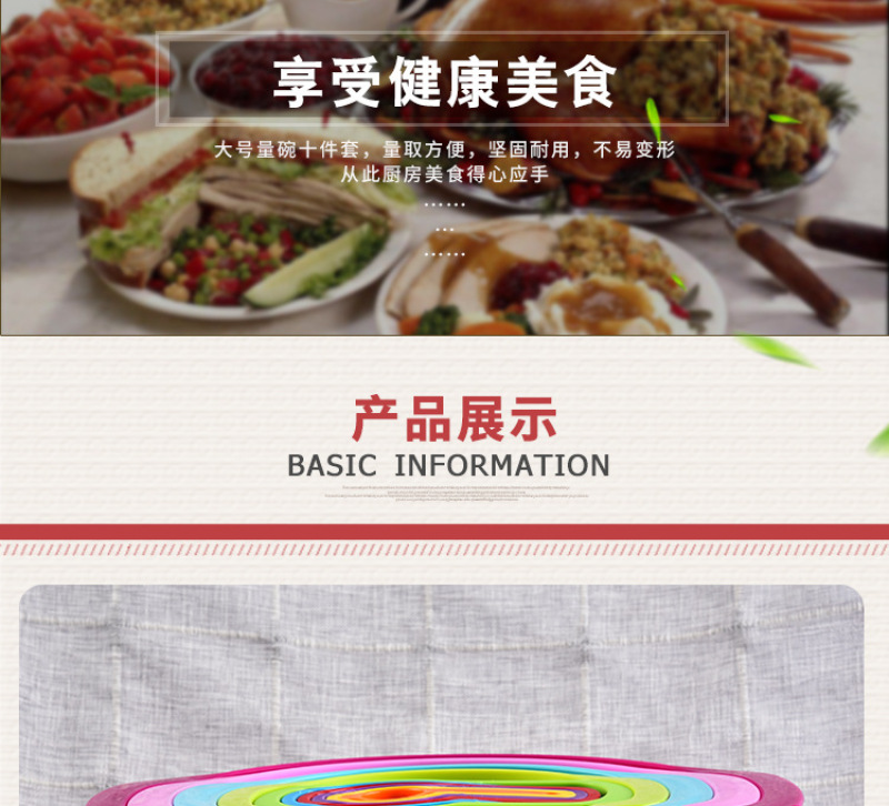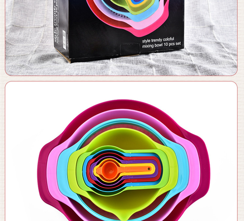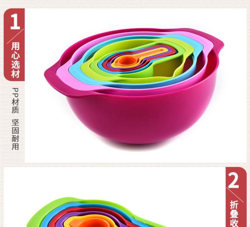 小工具 量勺套装 10件套组合塑料大号量碗烘焙多功能彩虹盘