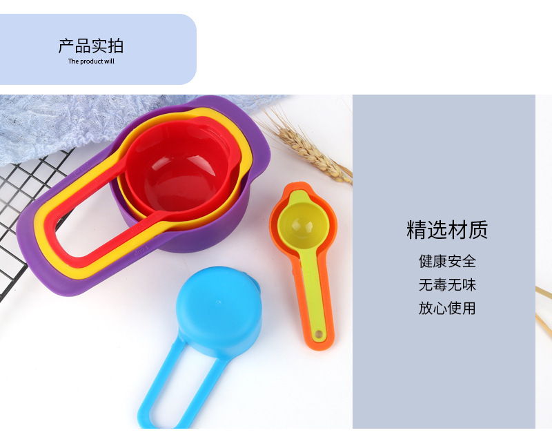 小工具 烘焙量勺套装 6件套组合塑料彩虹量杯 蛋糕 奶粉勺 咖啡勺