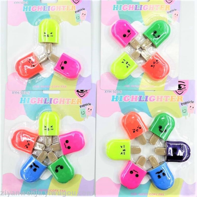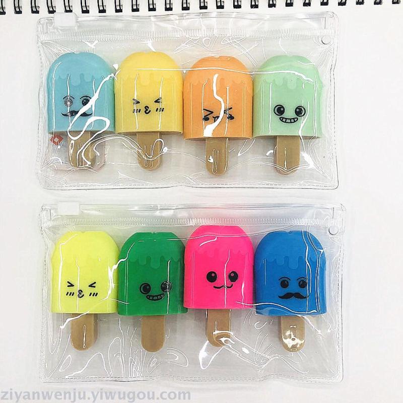 雪糕棒冰创意荧光笔卡通造型糖果色学生划重点标记笔