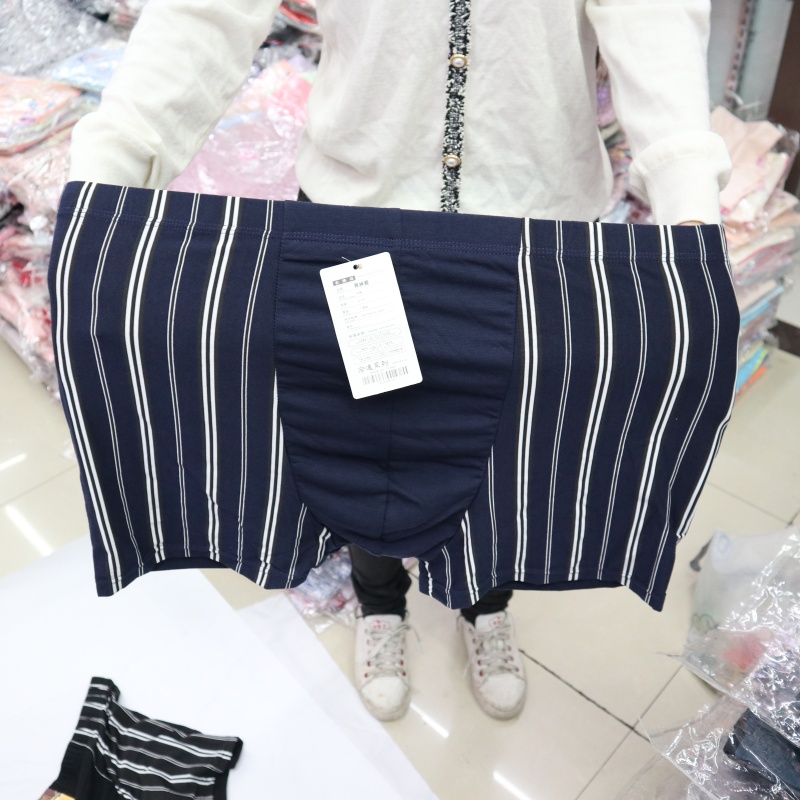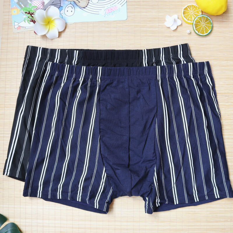 男士内裤特大肥佬蓝白条纹棉质面料平角裤头透气宽松舒适大四角裤