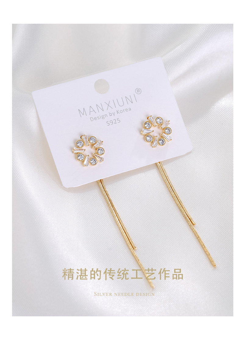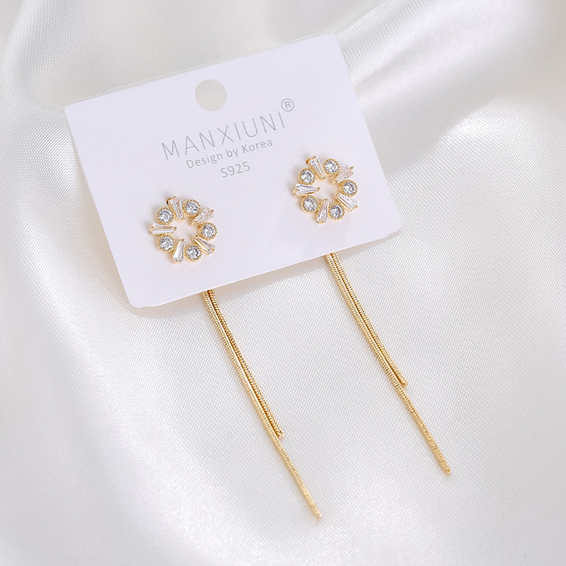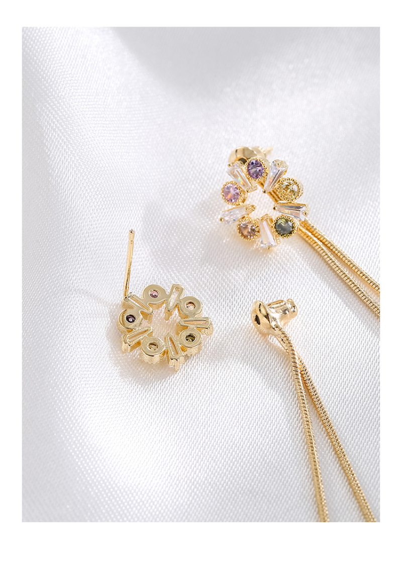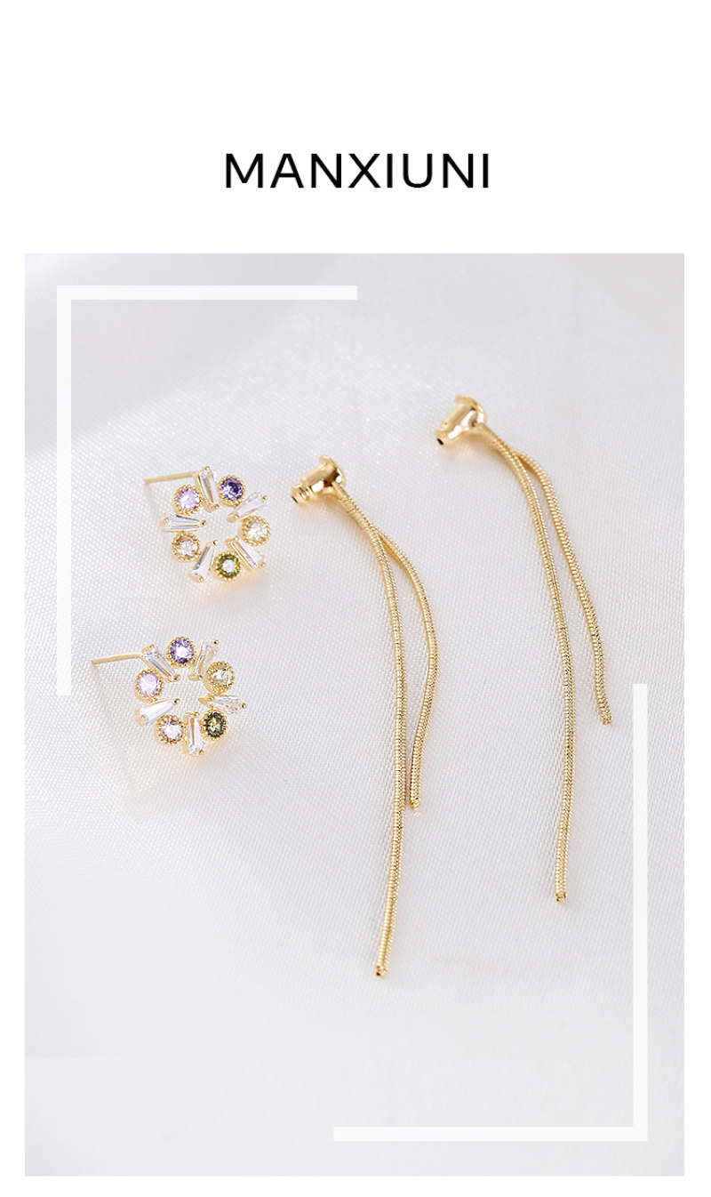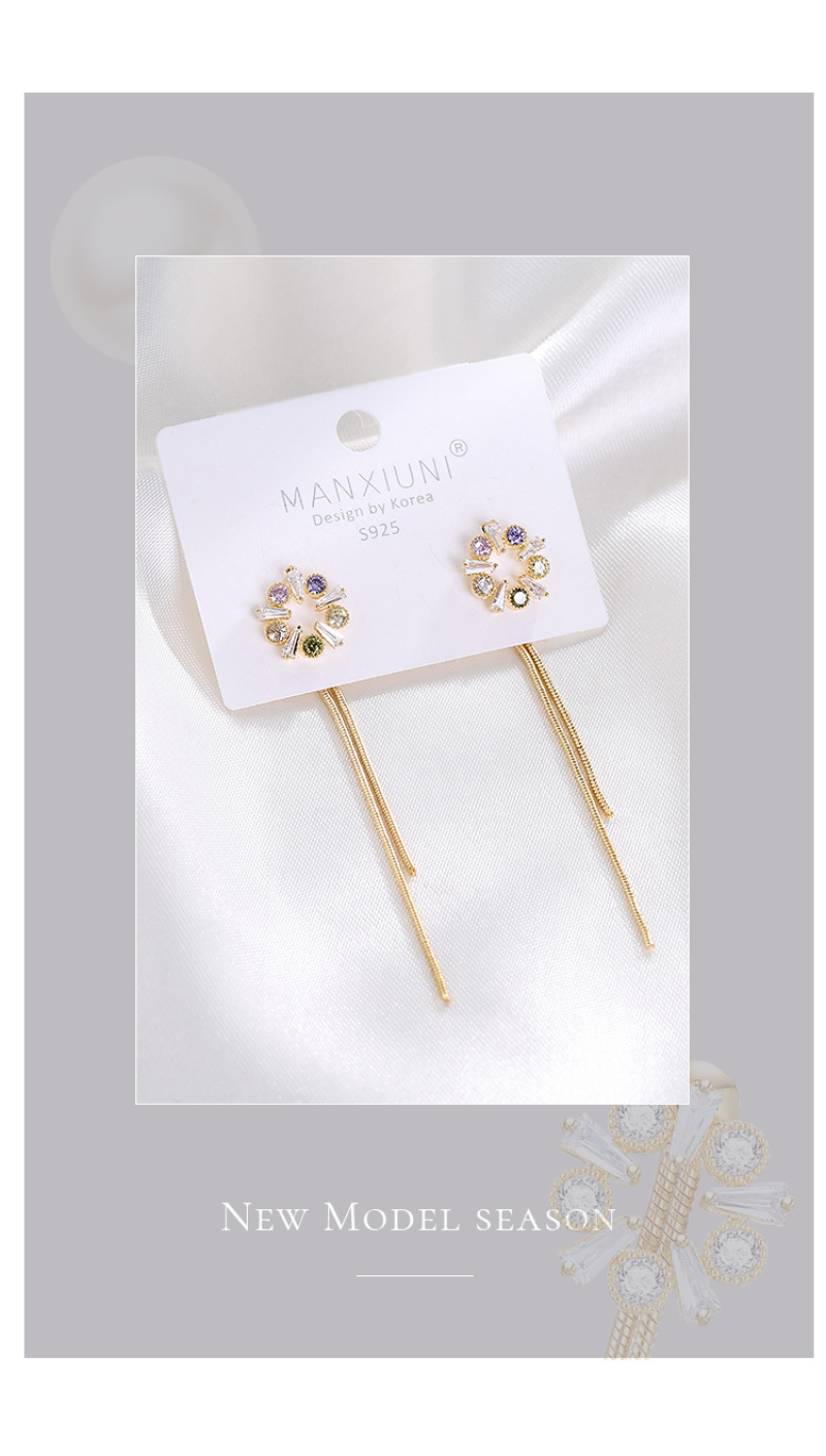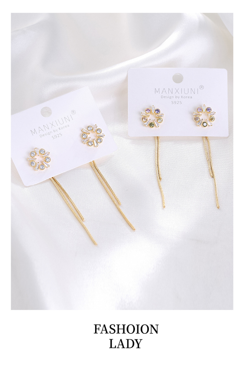 1款2戴流苏耳环925银针锆石耳坠彩色耳饰品厂家直销韩版批发耳环