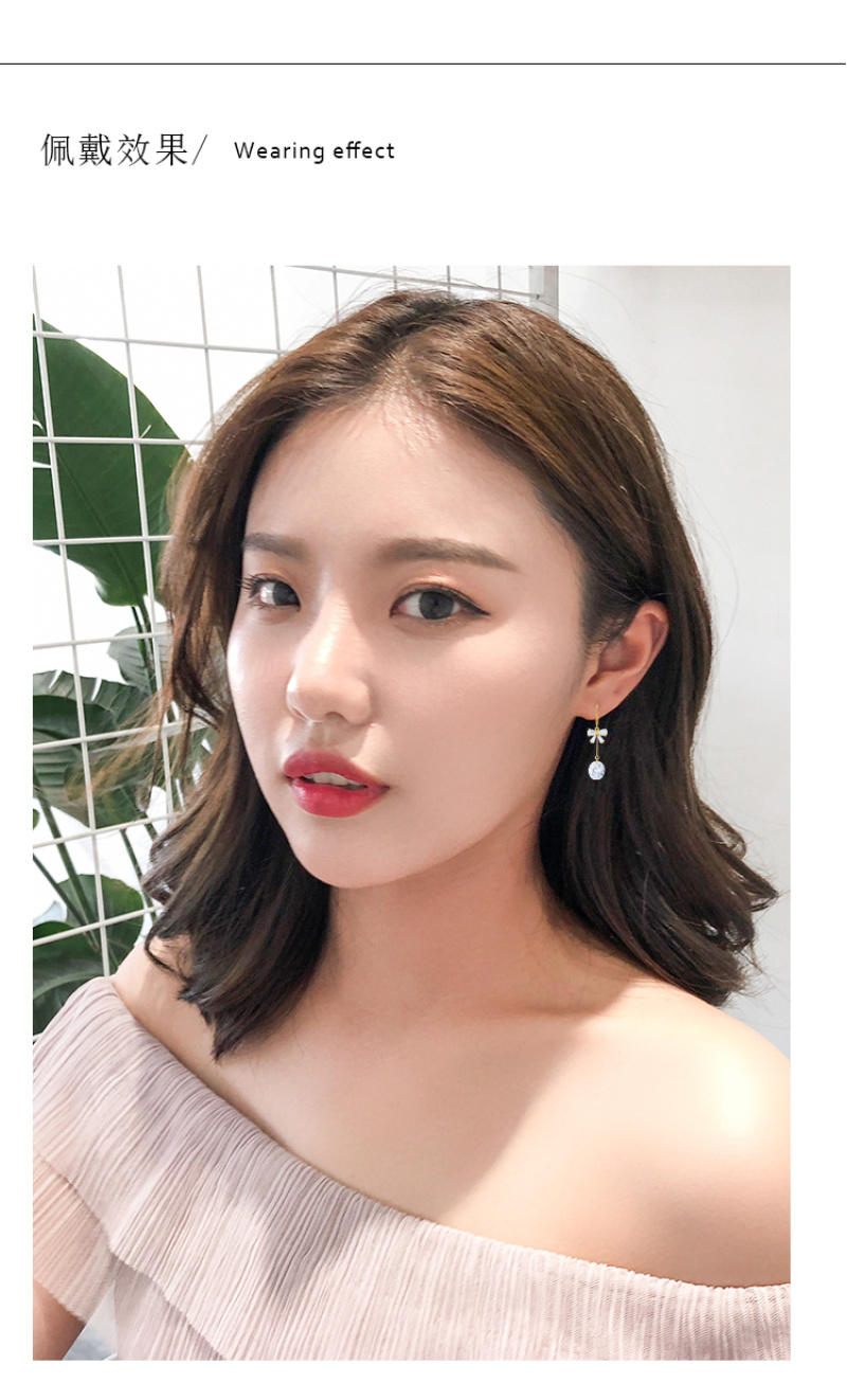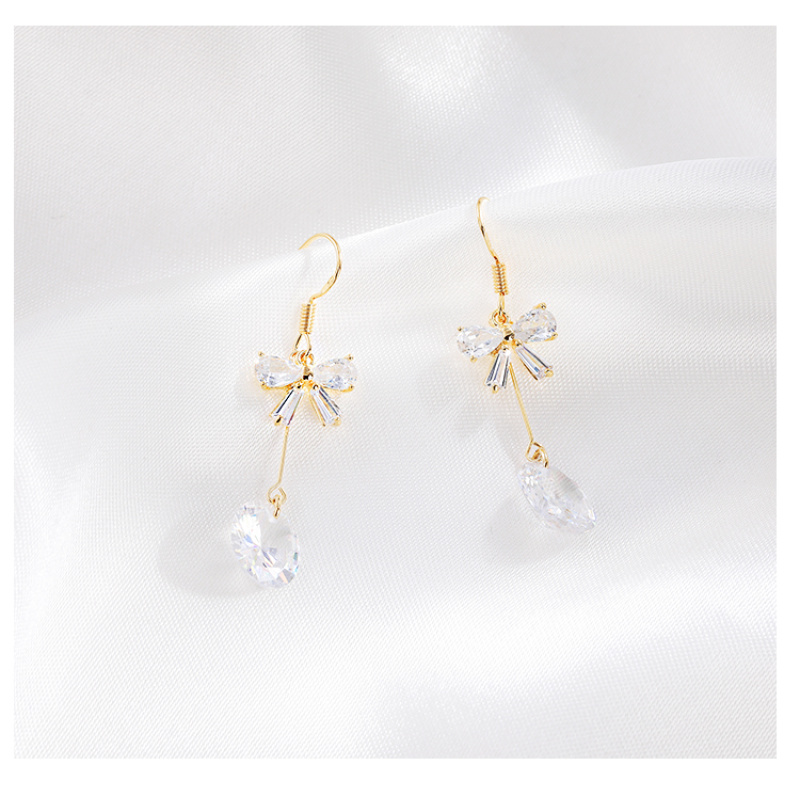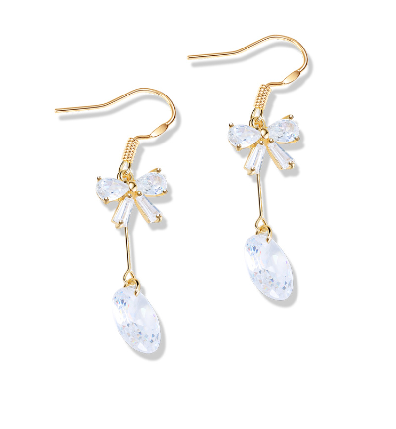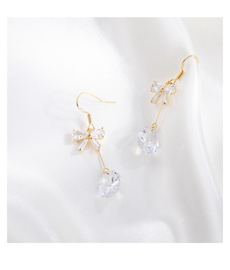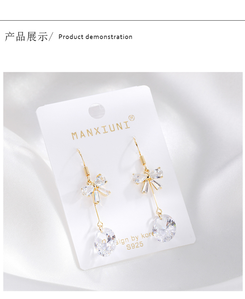 长款锆石耳环小领结耳坠显瘦脸耳饰品厂家直销批发耳钉925耳环