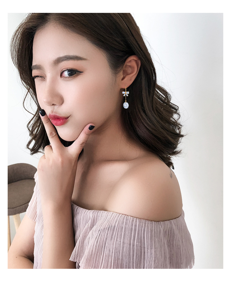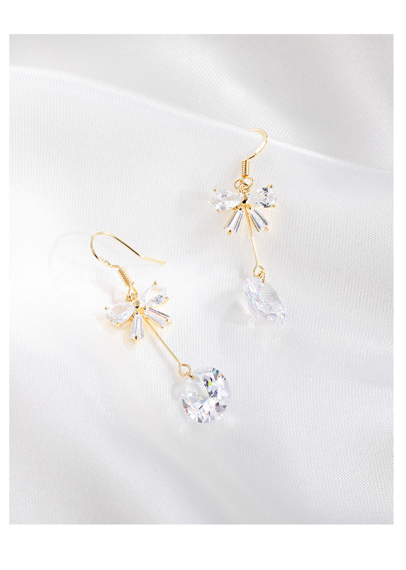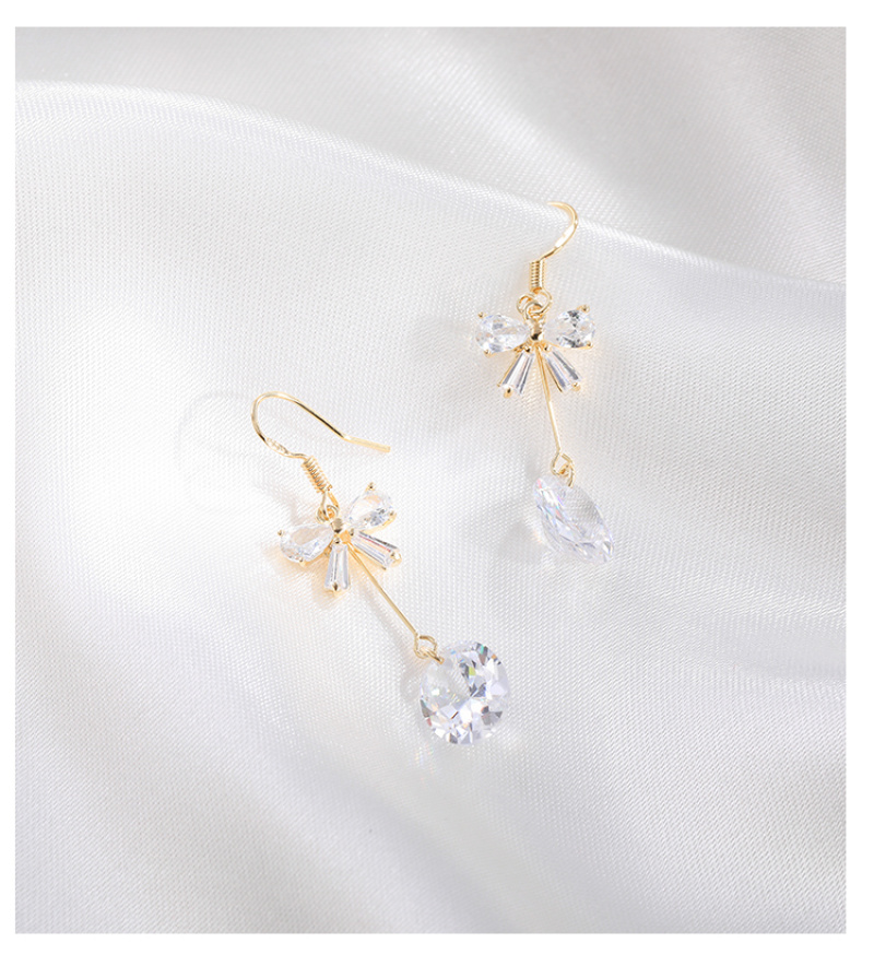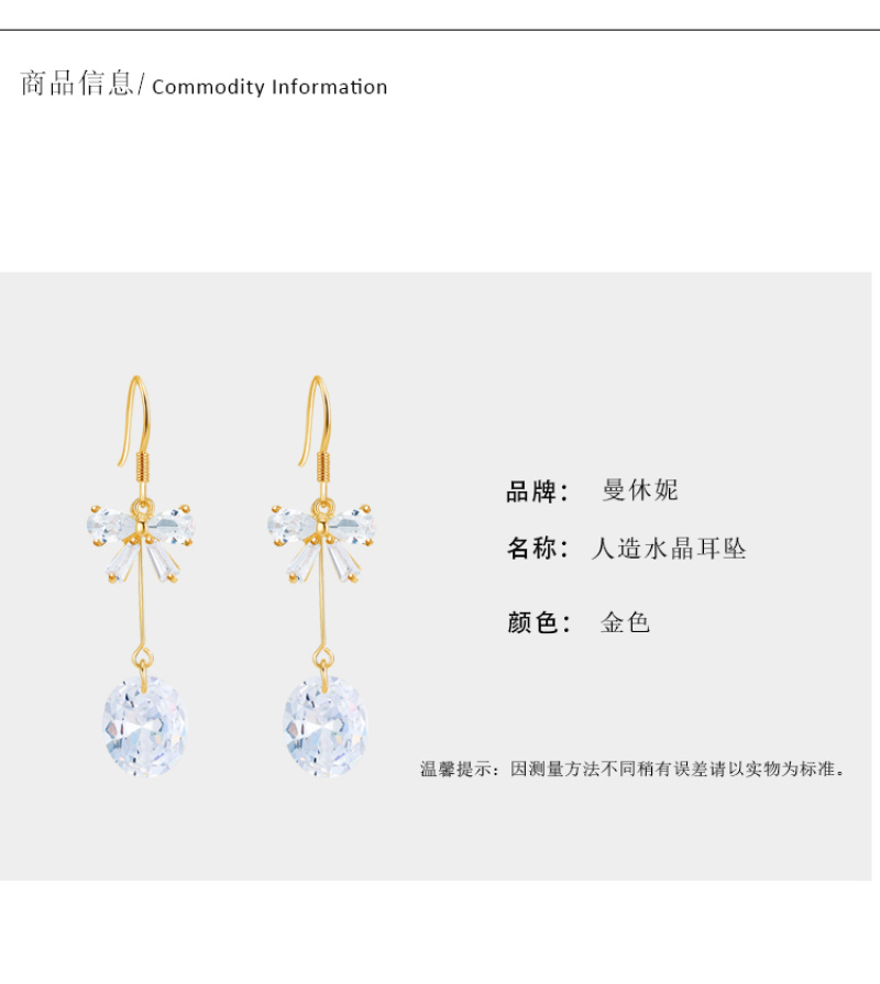长款锆石耳环小领结耳坠显瘦脸耳饰品厂家直销批发耳钉925耳环