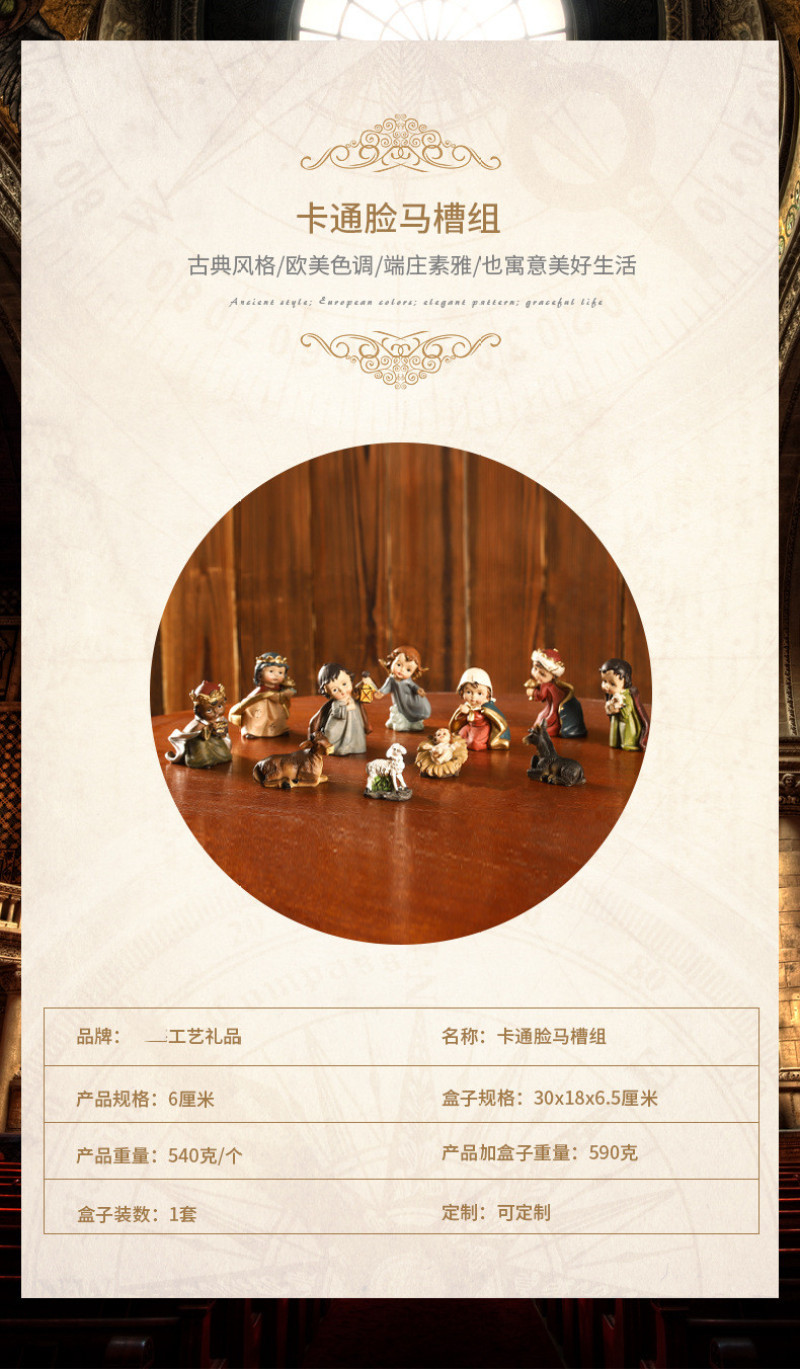 跨境圣诞卡通马槽组树脂工艺品摆件小圣婴诞生宗教礼物外贸单加工