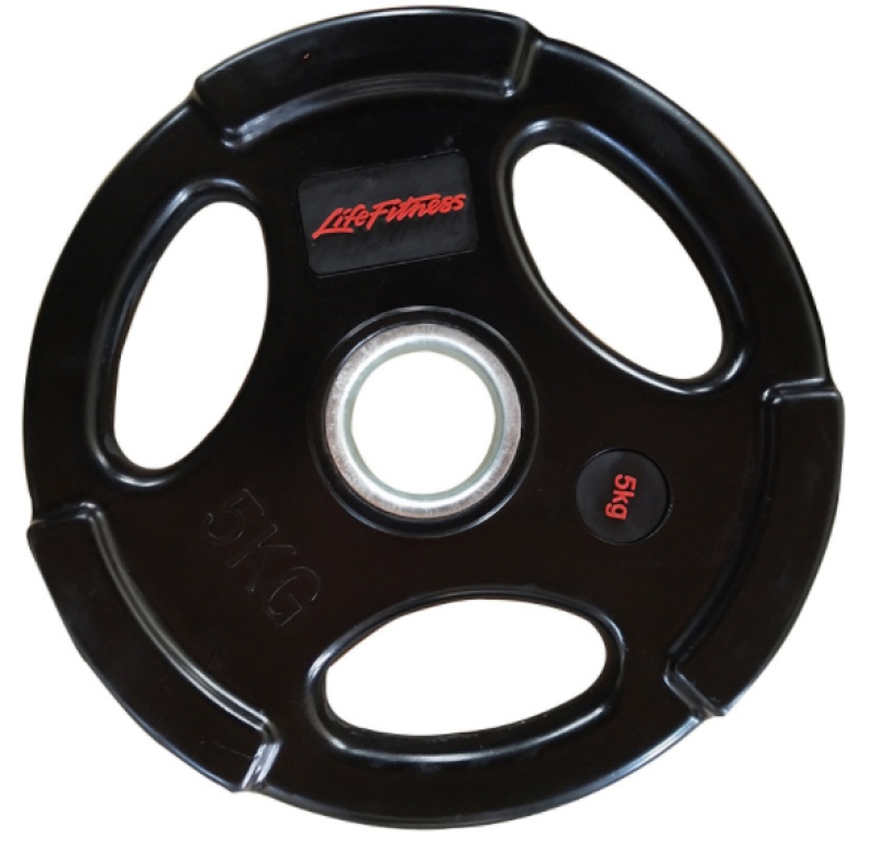 家用举重健身哑铃力健包胶三孔手抓杠铃片 锻炼臂力