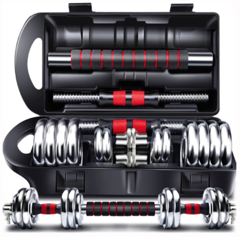 热销健身举重健身哑铃电镀彩杆双险母泡棉接头哑铃盒装 臂力锻炼