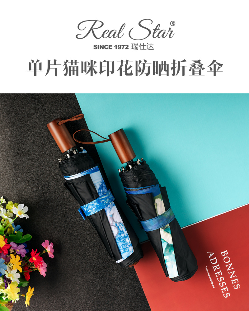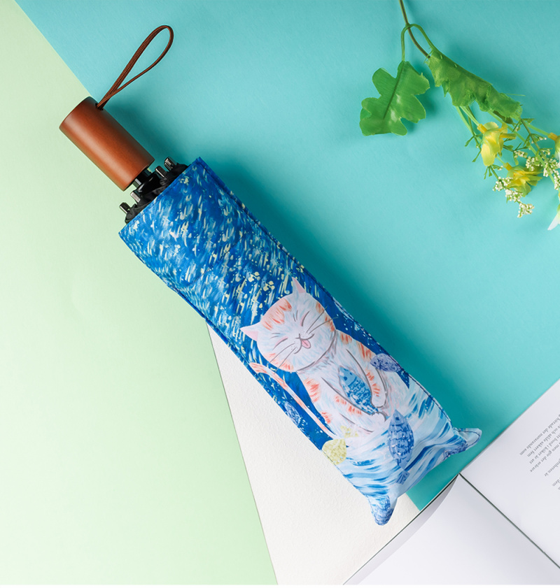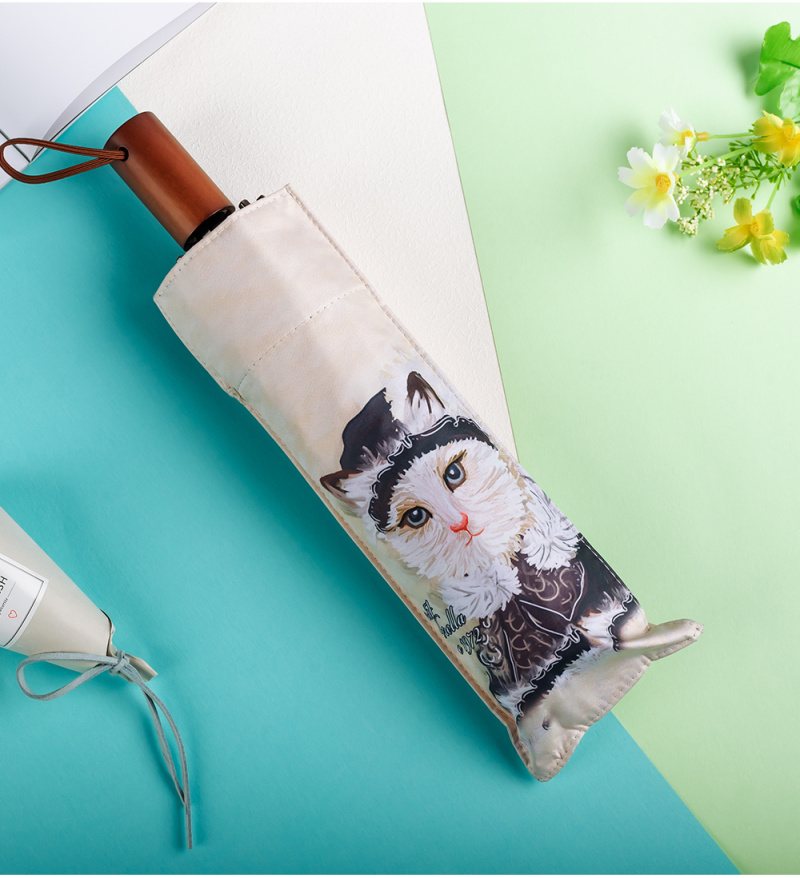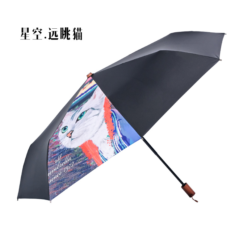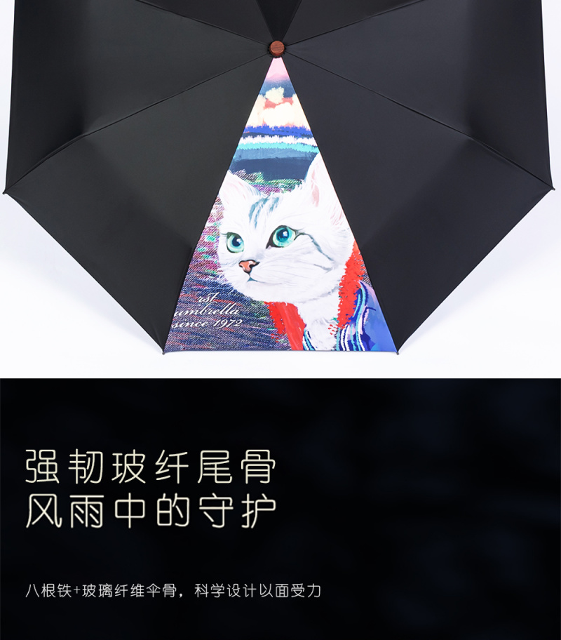 3196小猫雨伞三折零透光雨伞星宝伞礼品伞英伦风雨伞伞