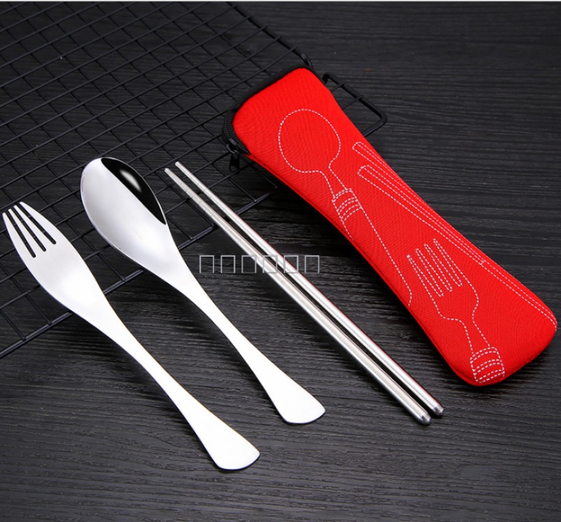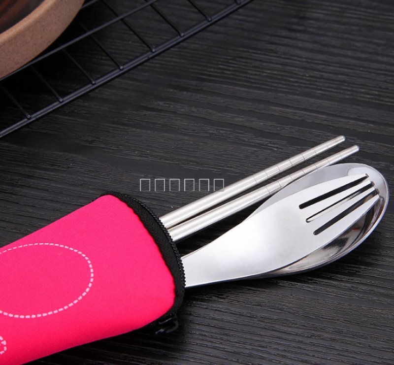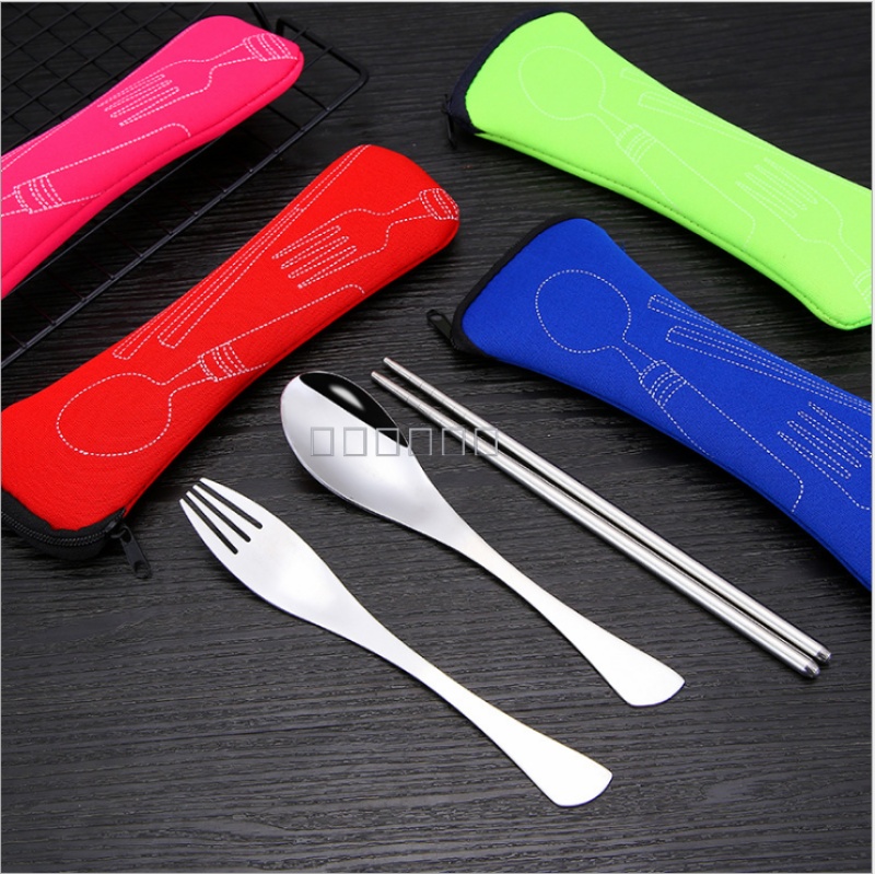 便捷餐具套装勺叉筷三件套 潜水袋帆布袋旅行套装 不锈钢餐具