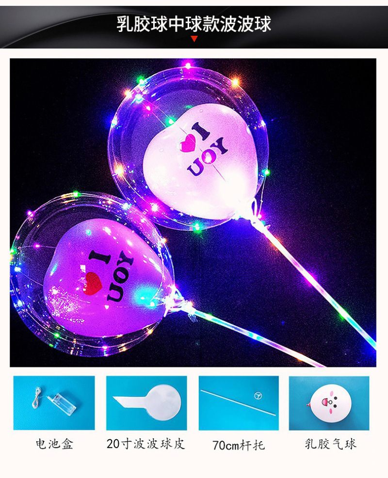 网红气球 发光波波球 七夕情人节 告白气球透明夜市LED带灯波波球