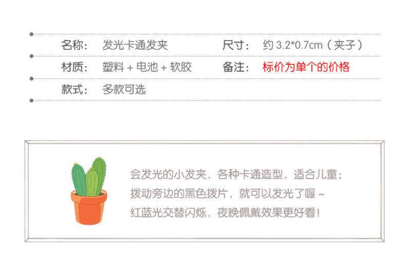 发光软胶发夹 儿童LED卡通发夹 卡通头饰 六一儿童地摊热卖批