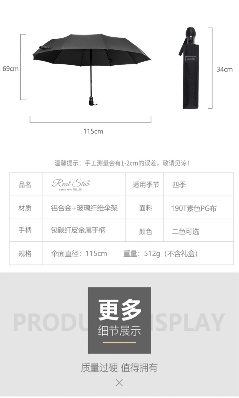 星宝伞Z305礼品伞男士商务雨伞RST三折自开收雨伞批发