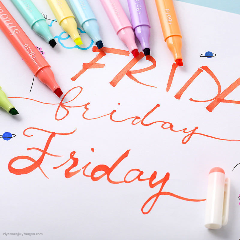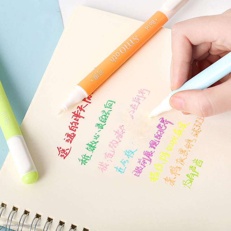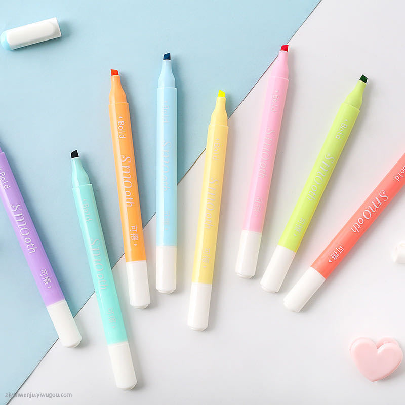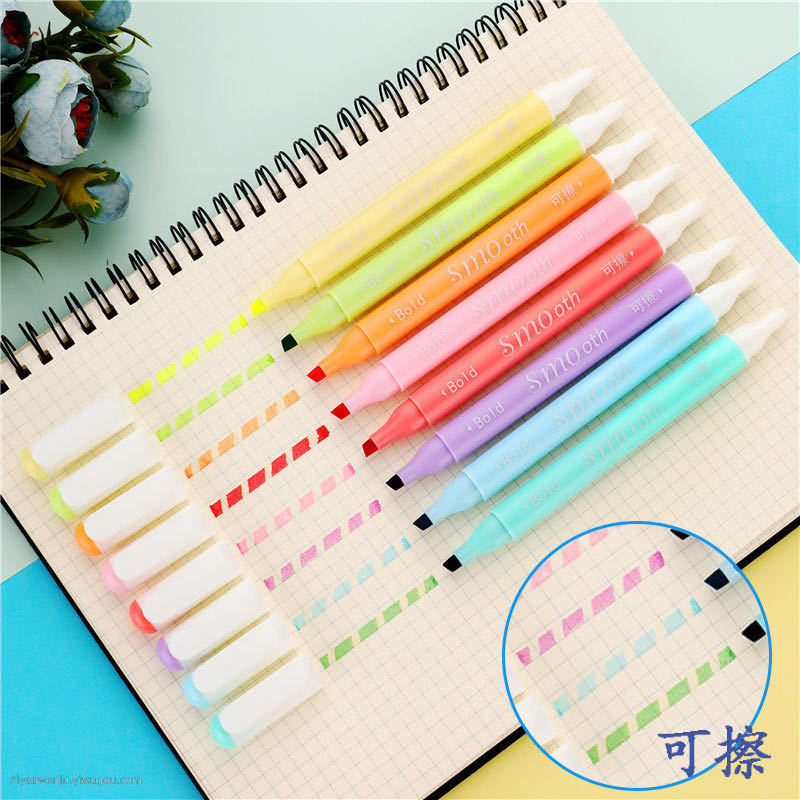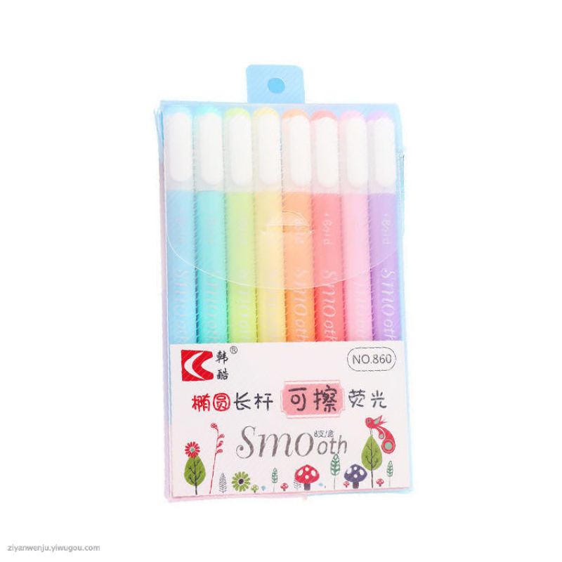 韩酷860可擦写荧光标记笔 椭圆长杆双头糖果色8色可擦荧光笔套装