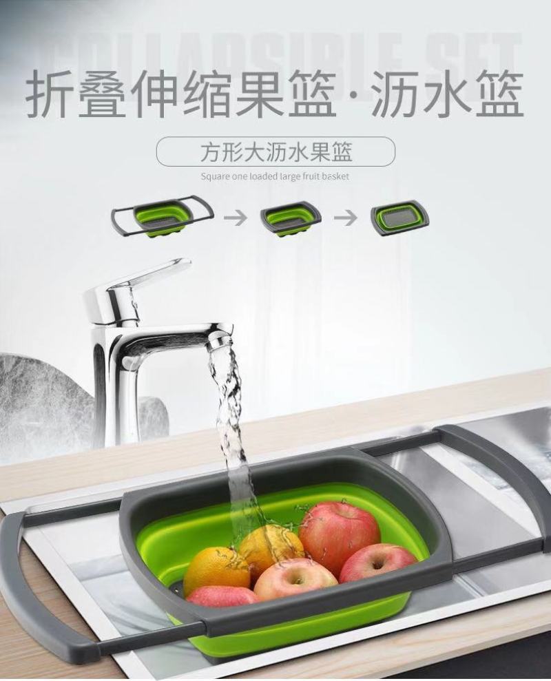 折叠 伸缩沥水篮 方形可家用洗果蔬 创意方便携带