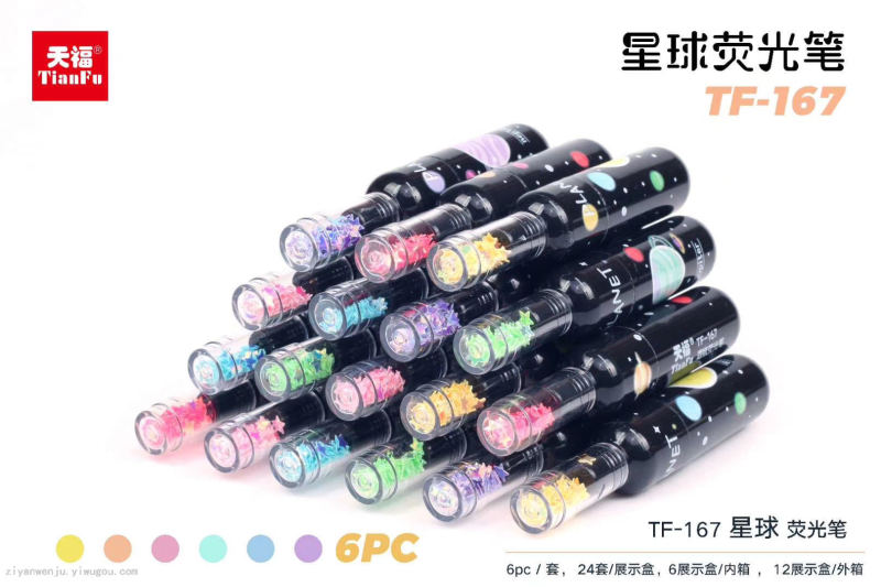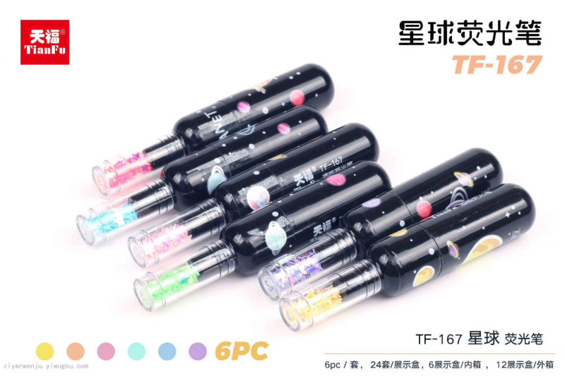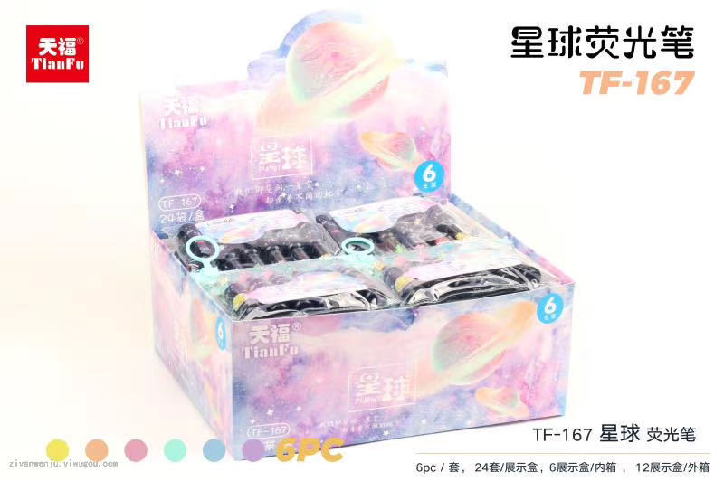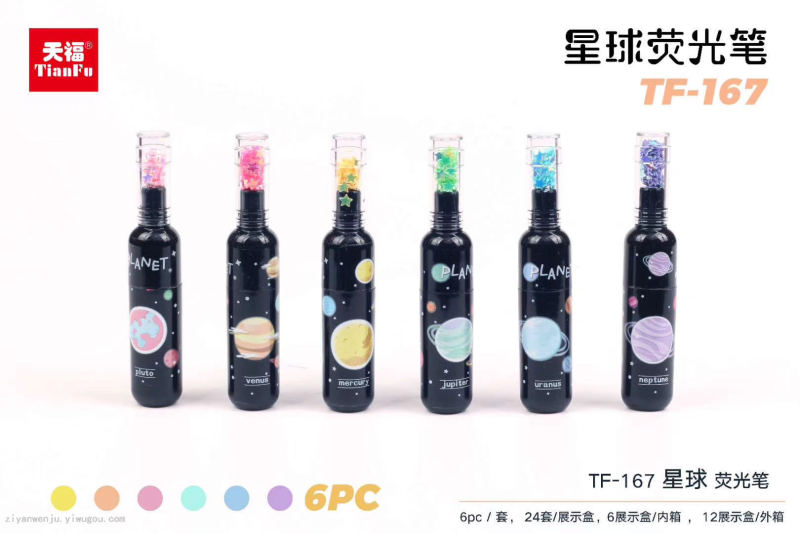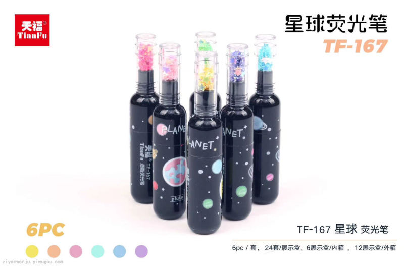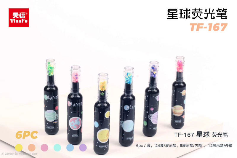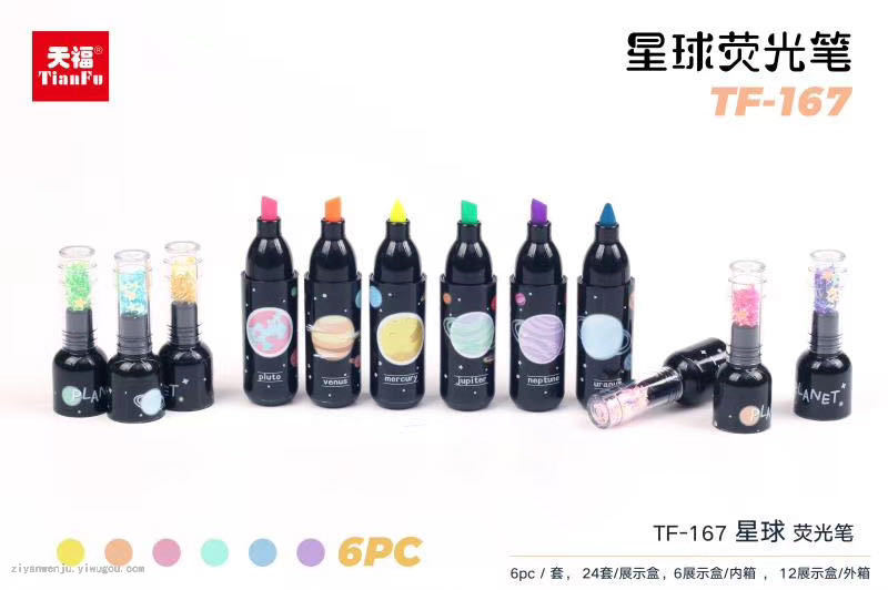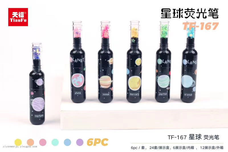 迷你酒瓶荧光笔 星球荧光笔彩色画重点标记笔涂鸦彩笔6色套装