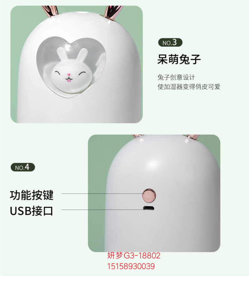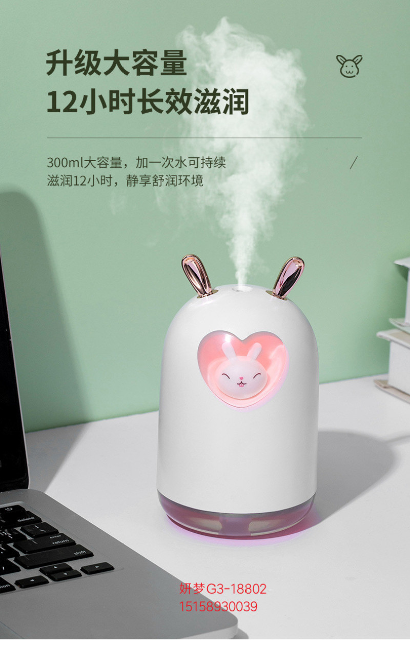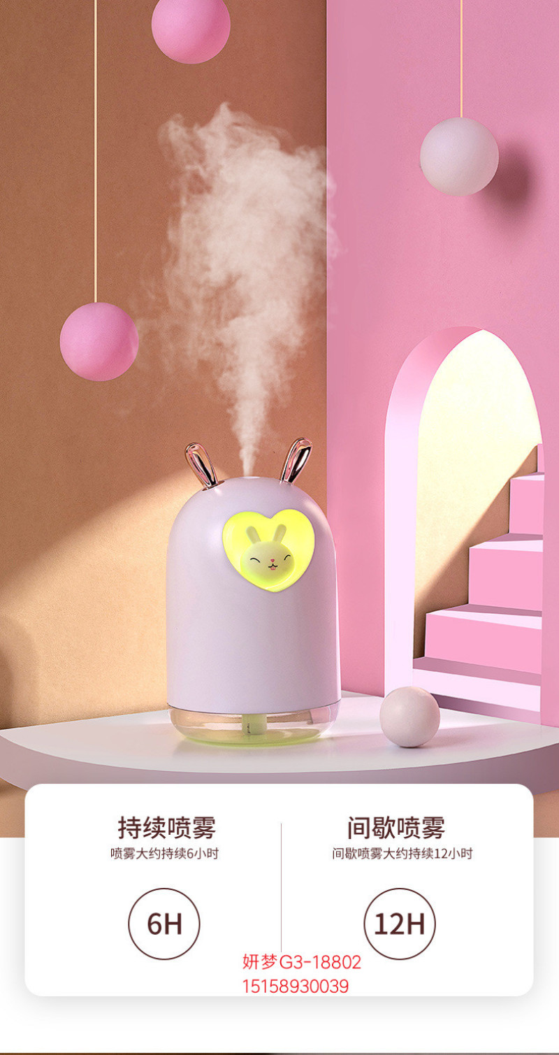 新品创意萌宠小仙兔加湿器 迷你usb家用卧室空气净化器礼品