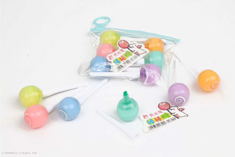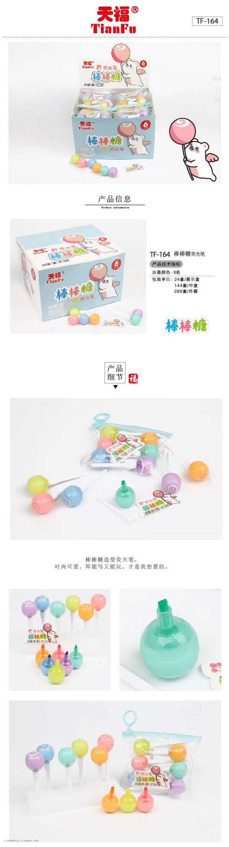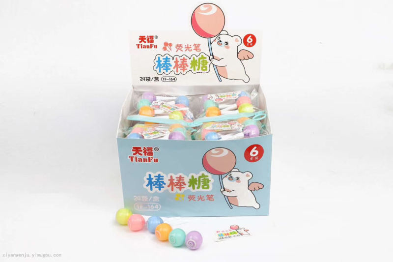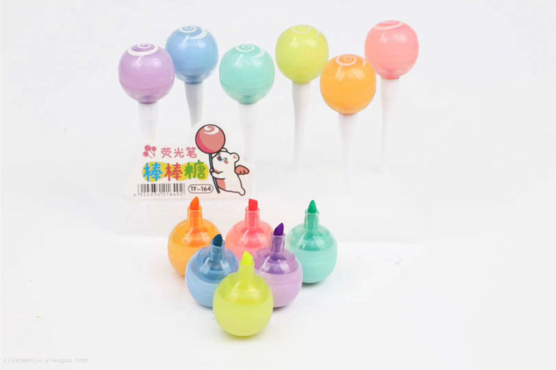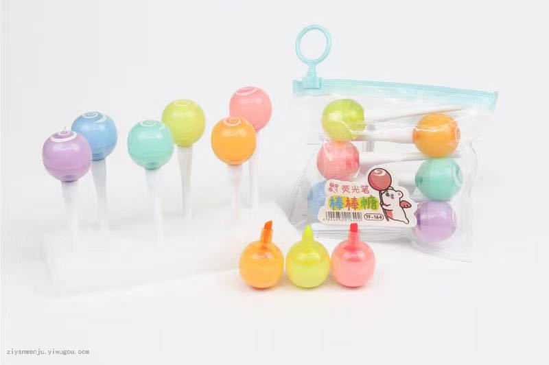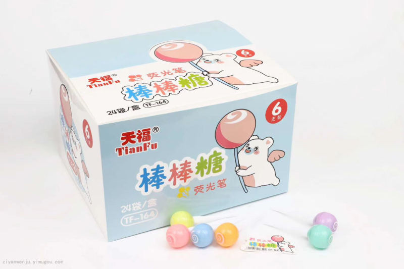 天福可爱仿真棒棒糖荧光笔迷你彩色学生办公划重点标记笔6色套装