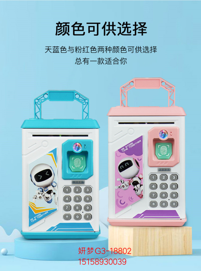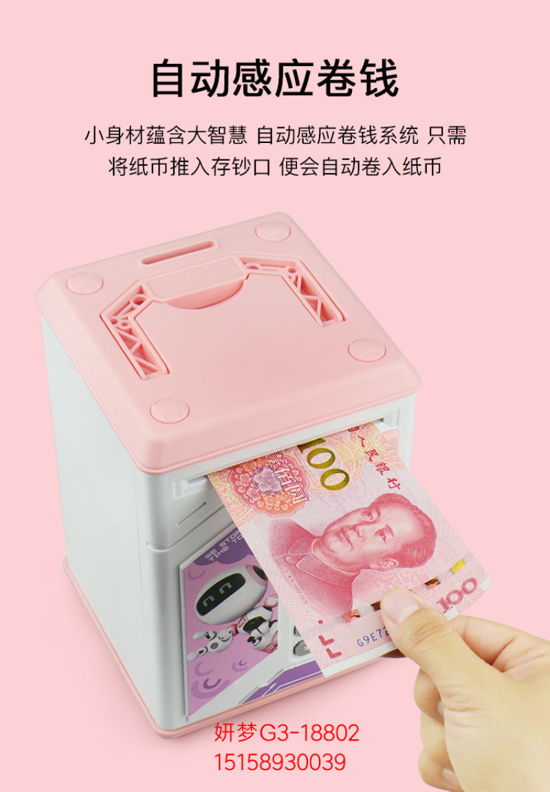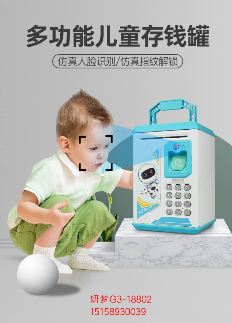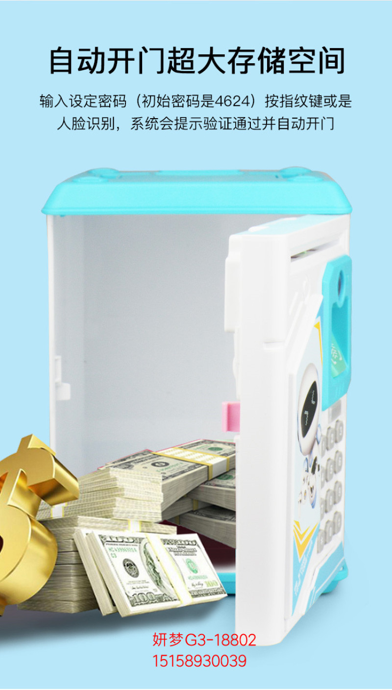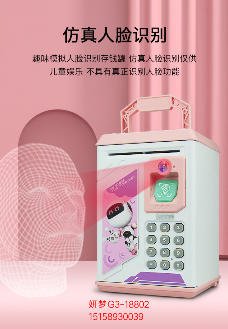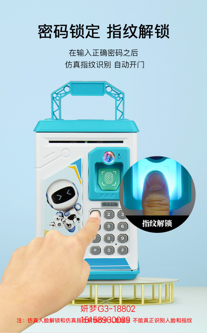 儿童密码存钱罐仿真指纹人脸识别密码箱储蓄罐自动卷钱可存取