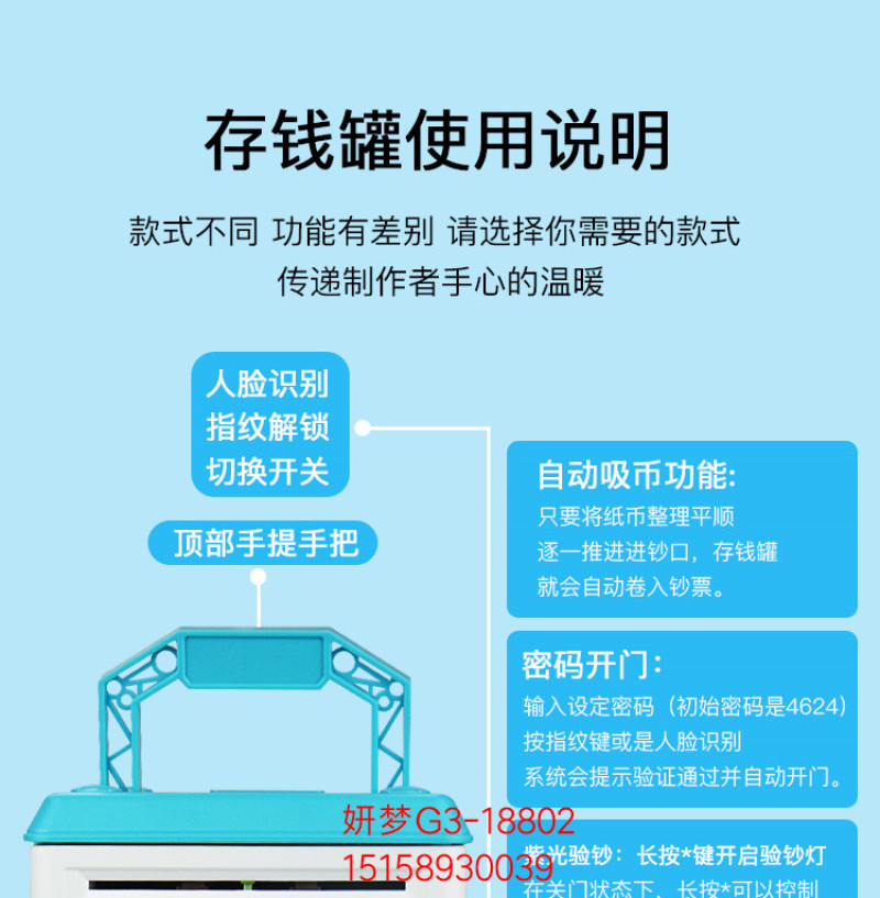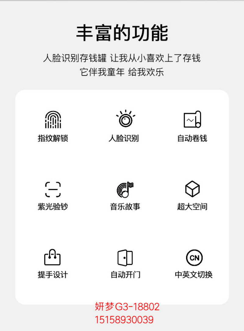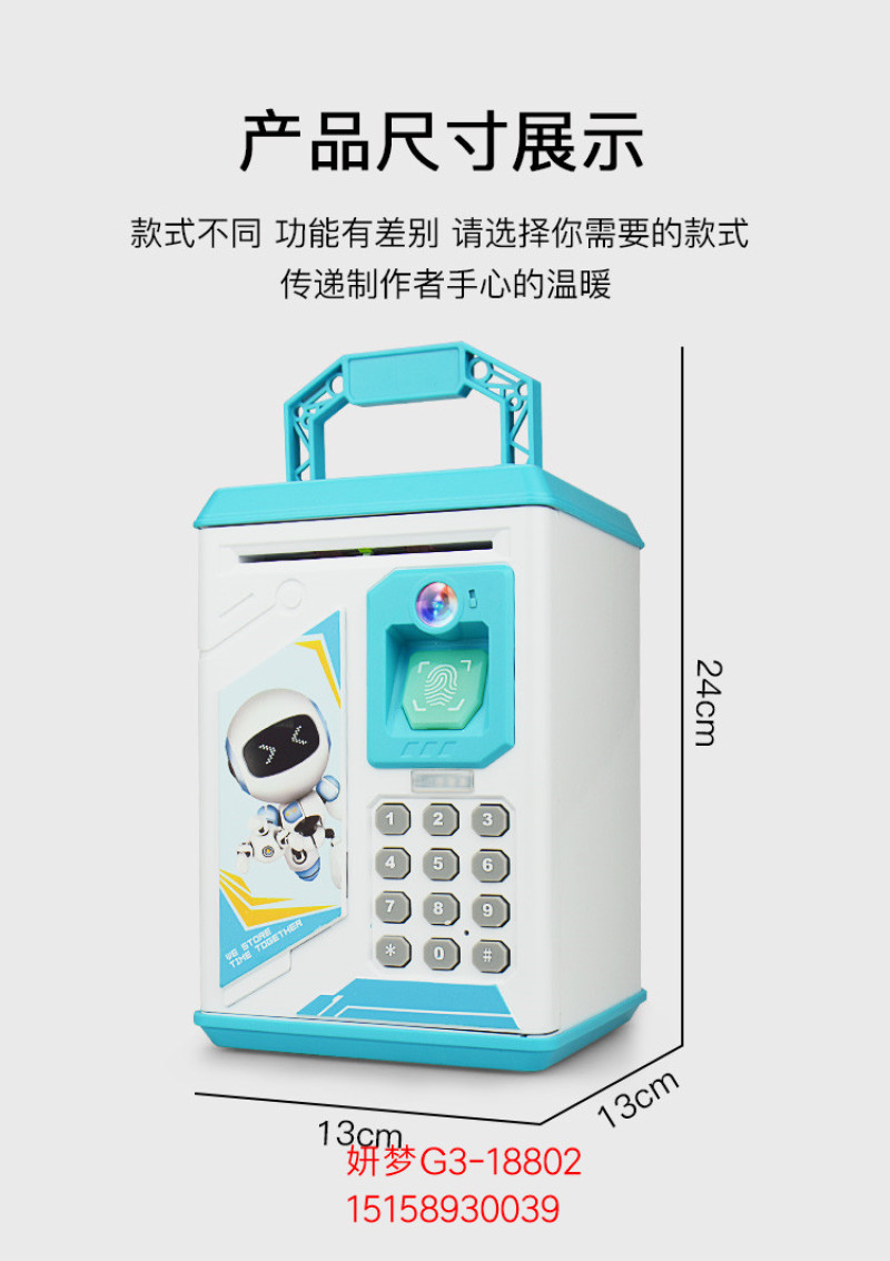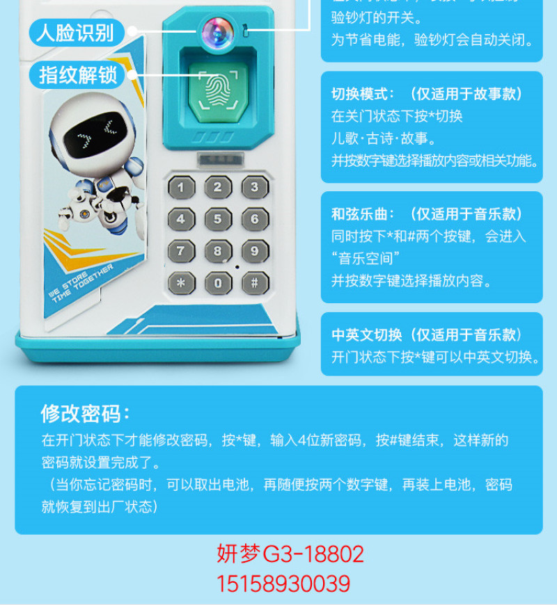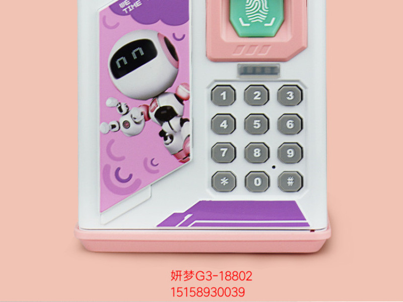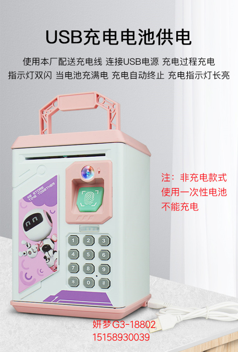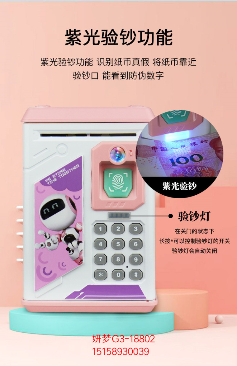 儿童密码存钱罐仿真指纹人脸识别密码箱储蓄罐自动卷钱可存取