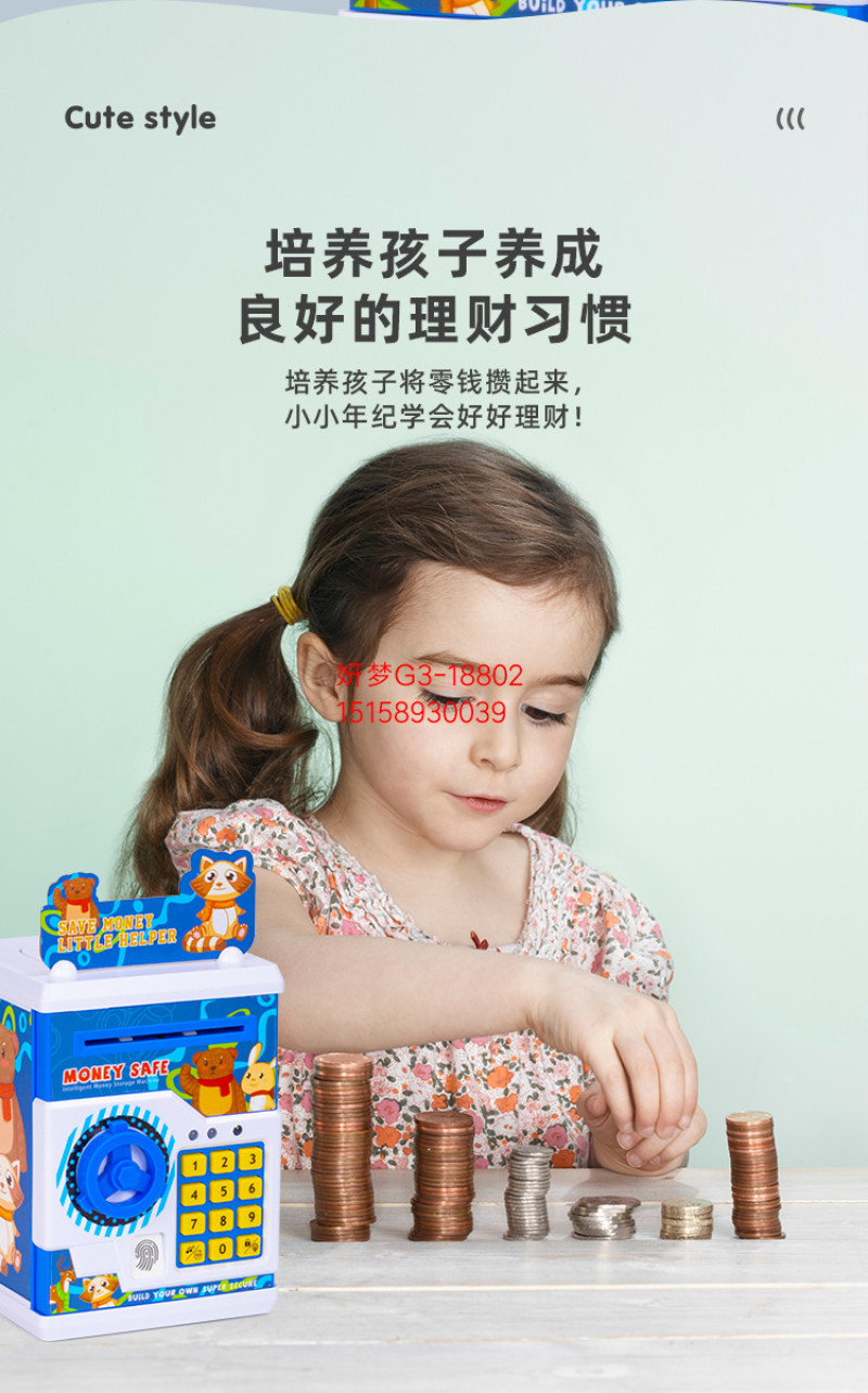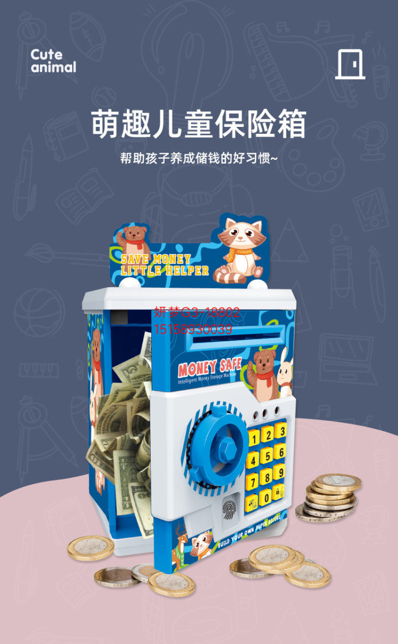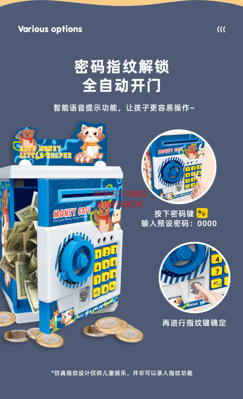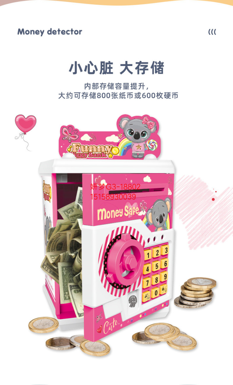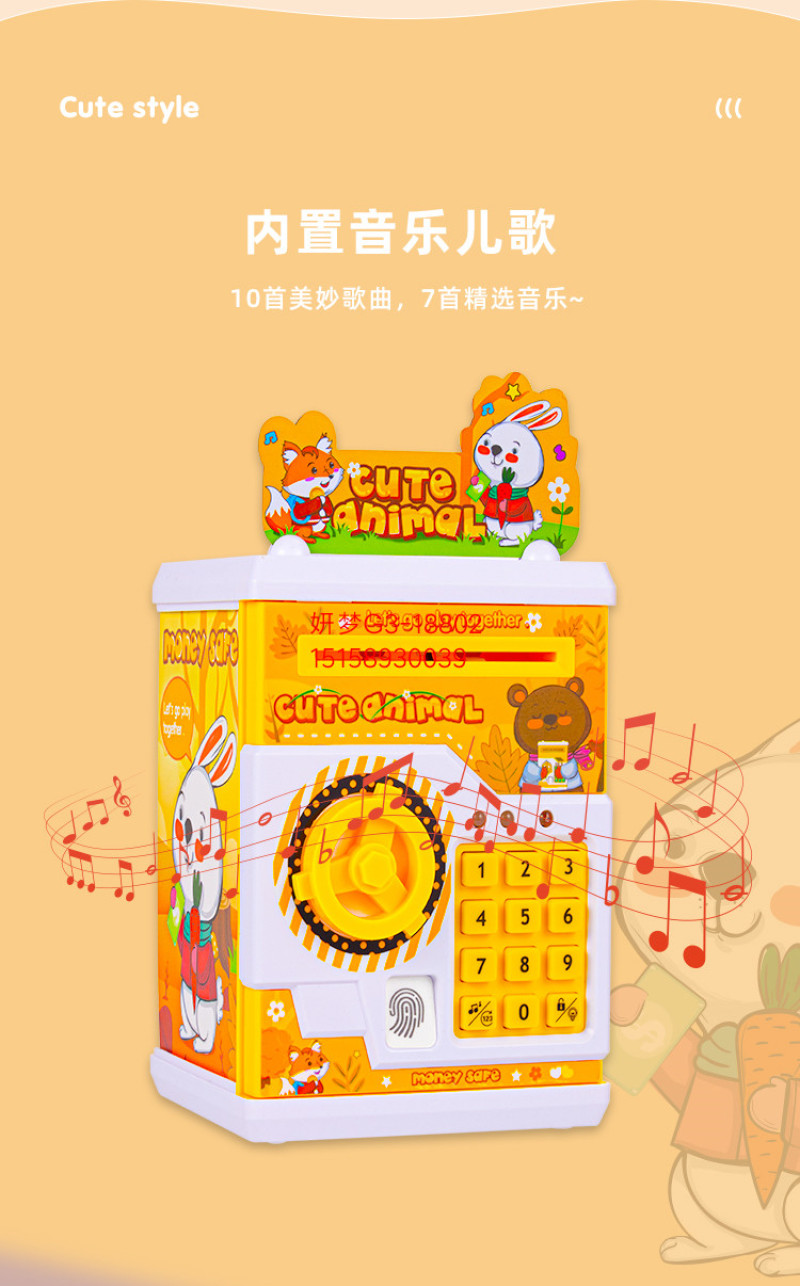 卡通创意智能存钱罐储蓄罐保险箱音乐自动开门指纹解锁儿童男女孩