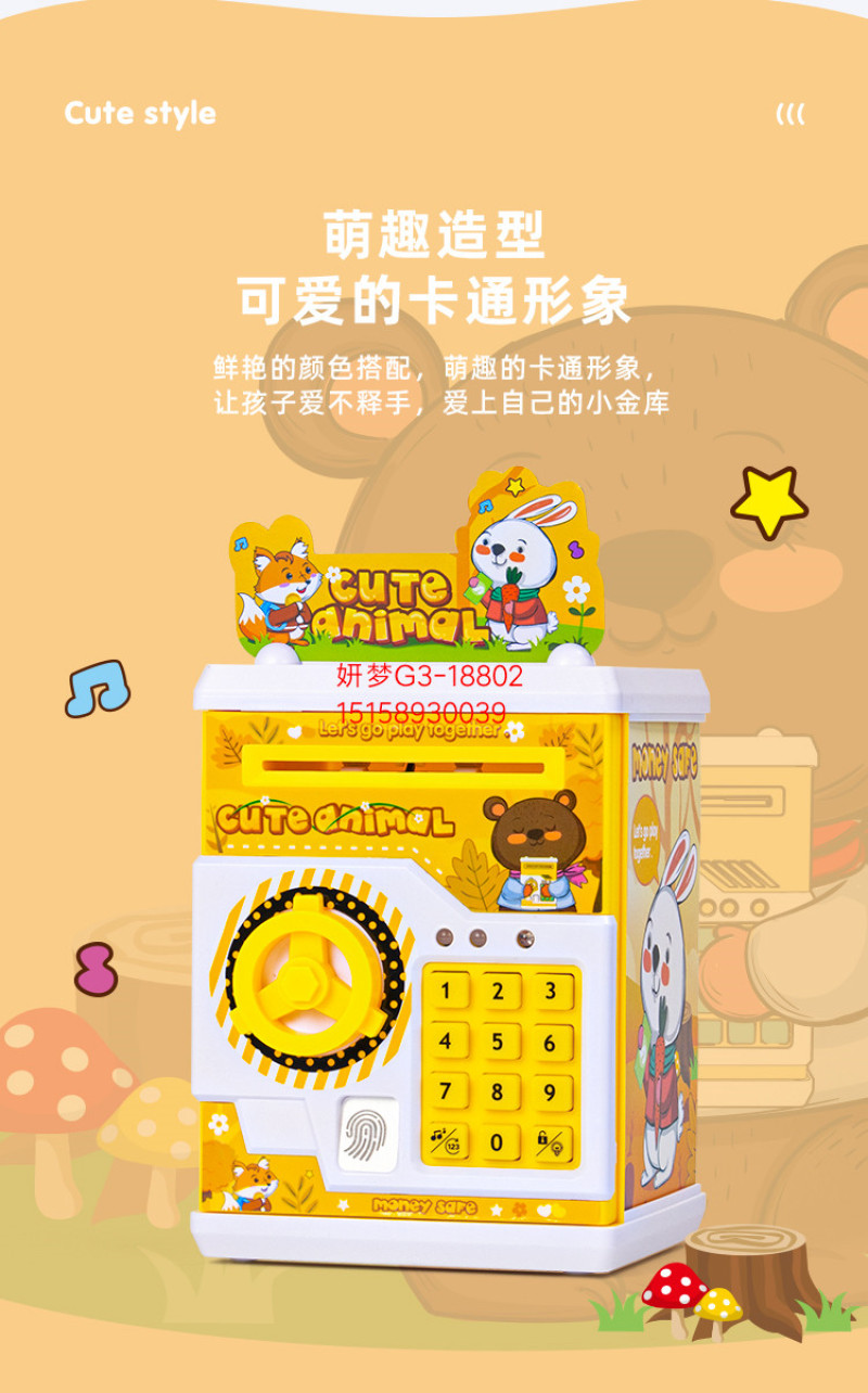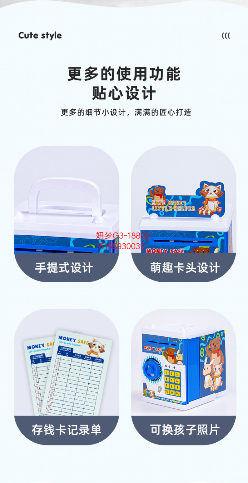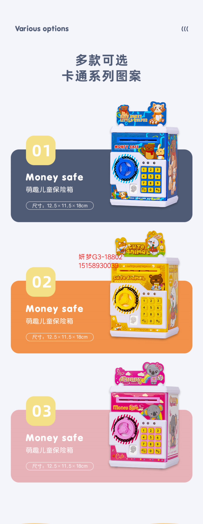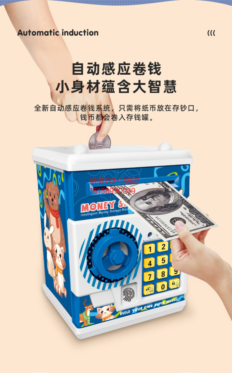 卡通创意智能存钱罐储蓄罐保险箱音乐自动开门指纹解锁儿童男女孩