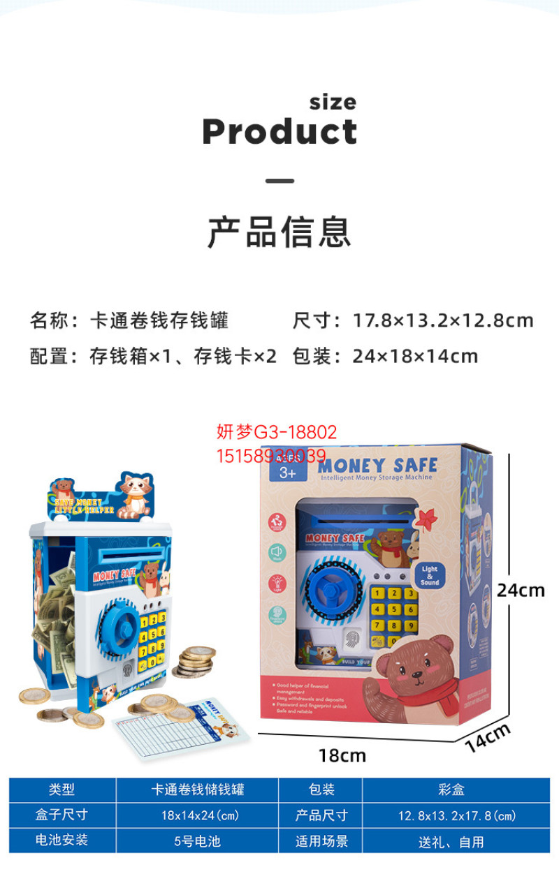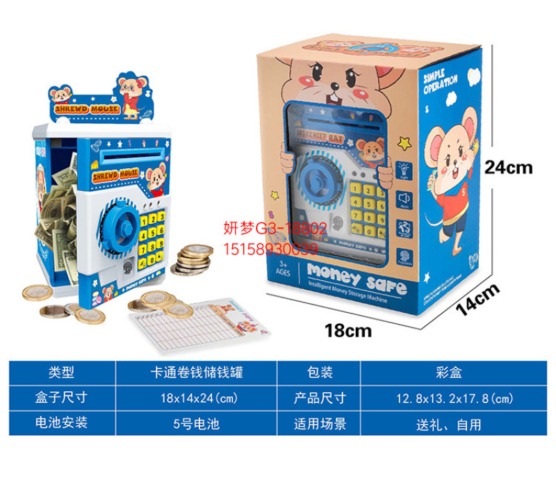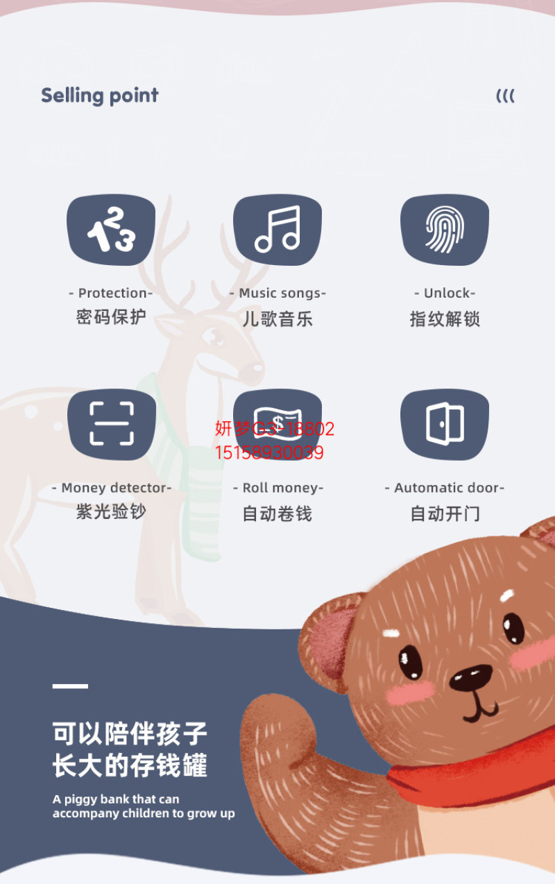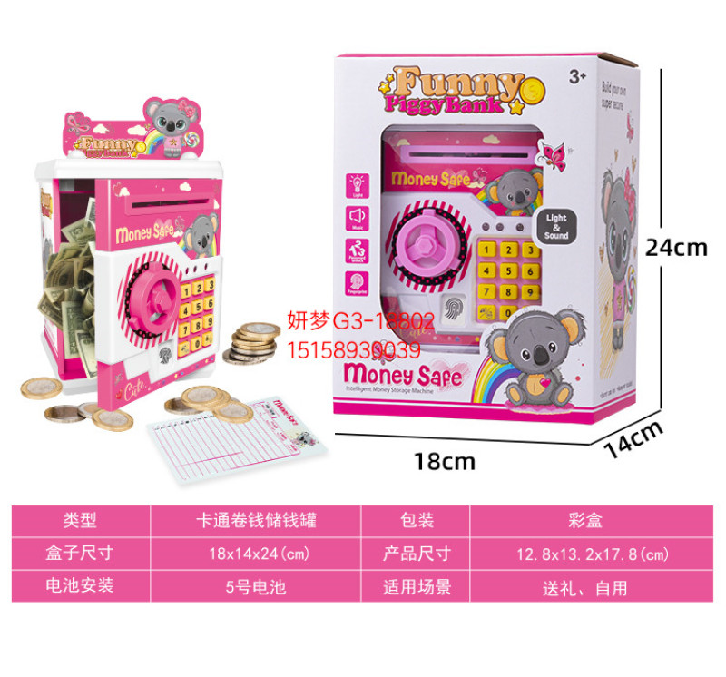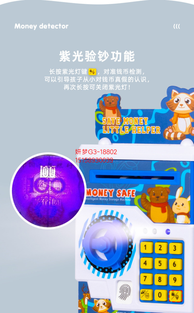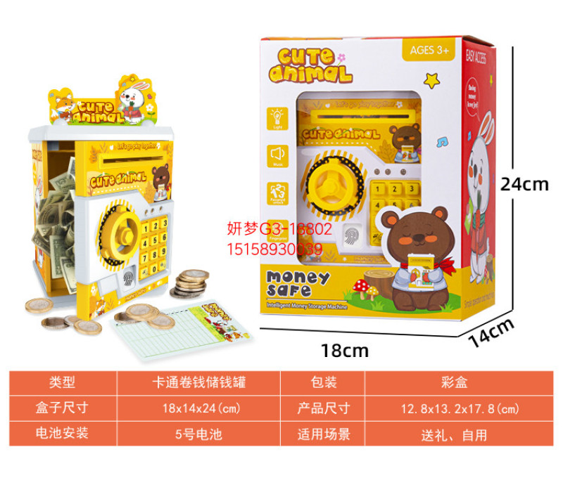 卡通创意智能存钱罐储蓄罐保险箱音乐自动开门指纹解锁儿童男女孩