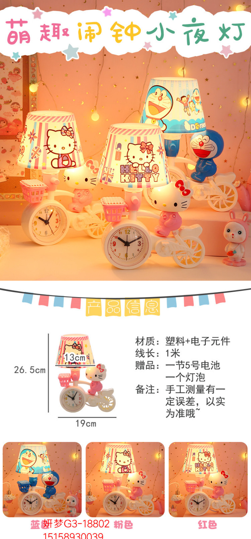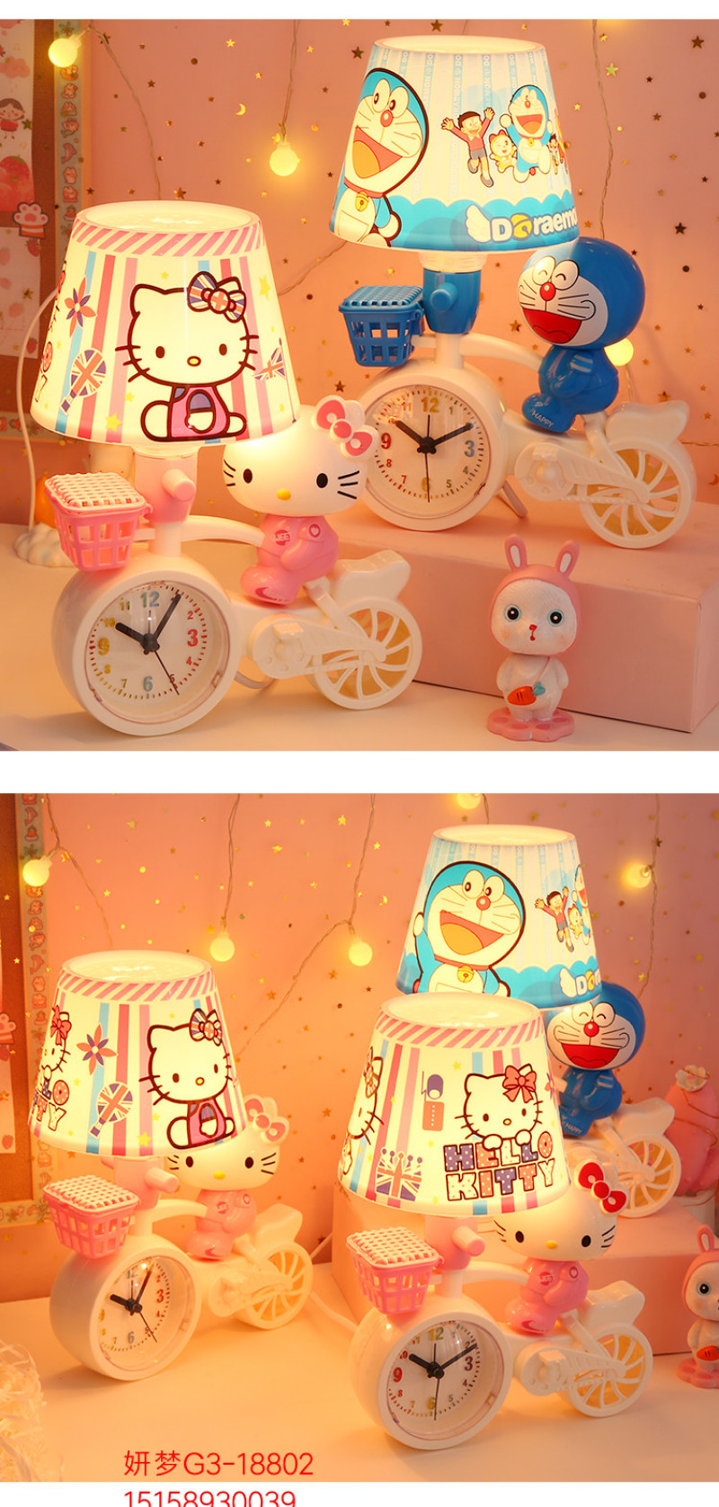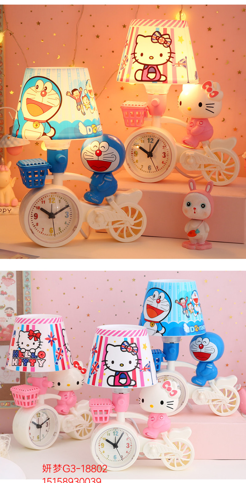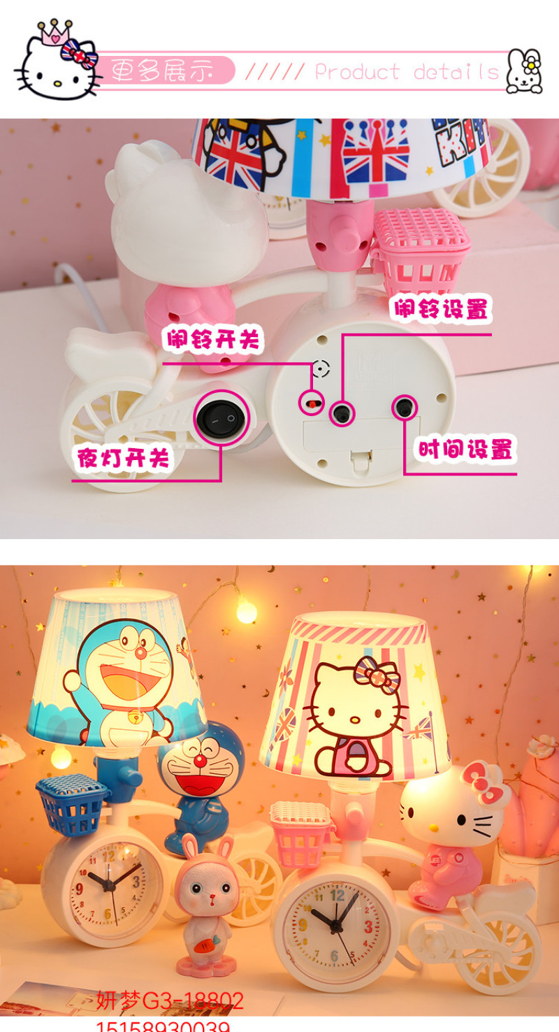 卡通单车自行车时钟闹钟台灯