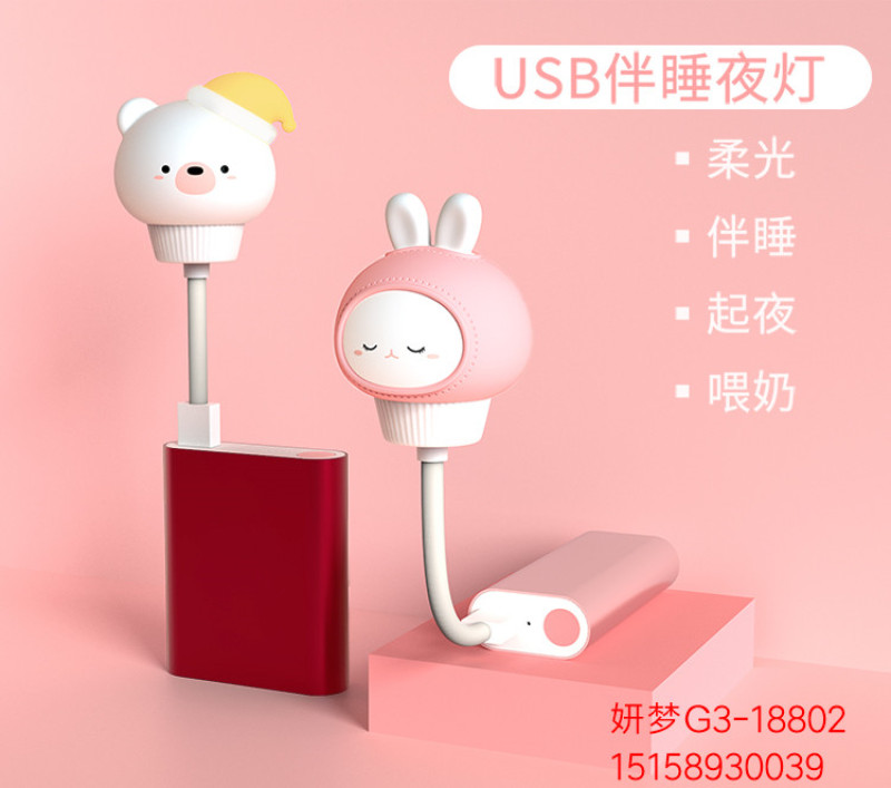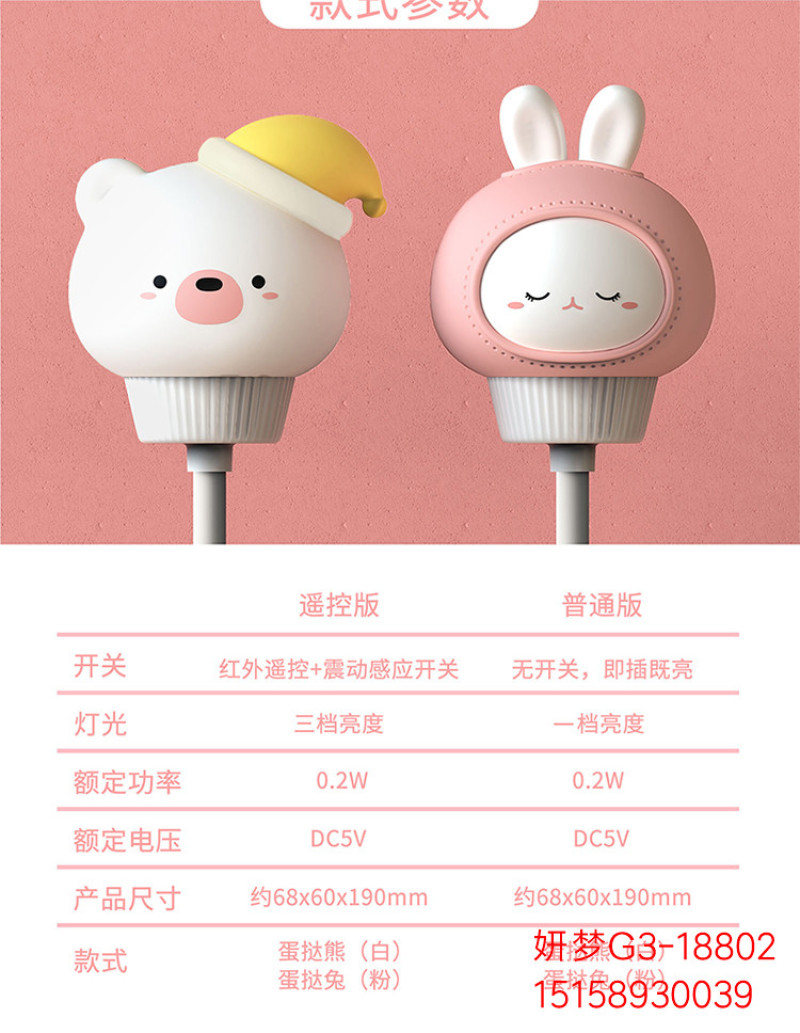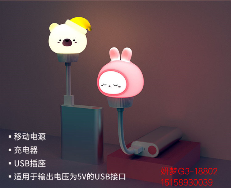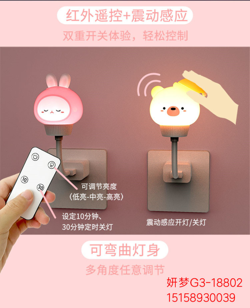 卡通蛋挞熊兔小夜灯USB插电遥控定时夜灯儿童卧室迷你婴儿喂奶灯