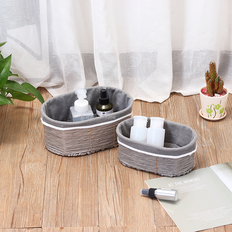 家居手工纸绳编织绳编杯垫日式简约收纳篮椭圆形编收纳